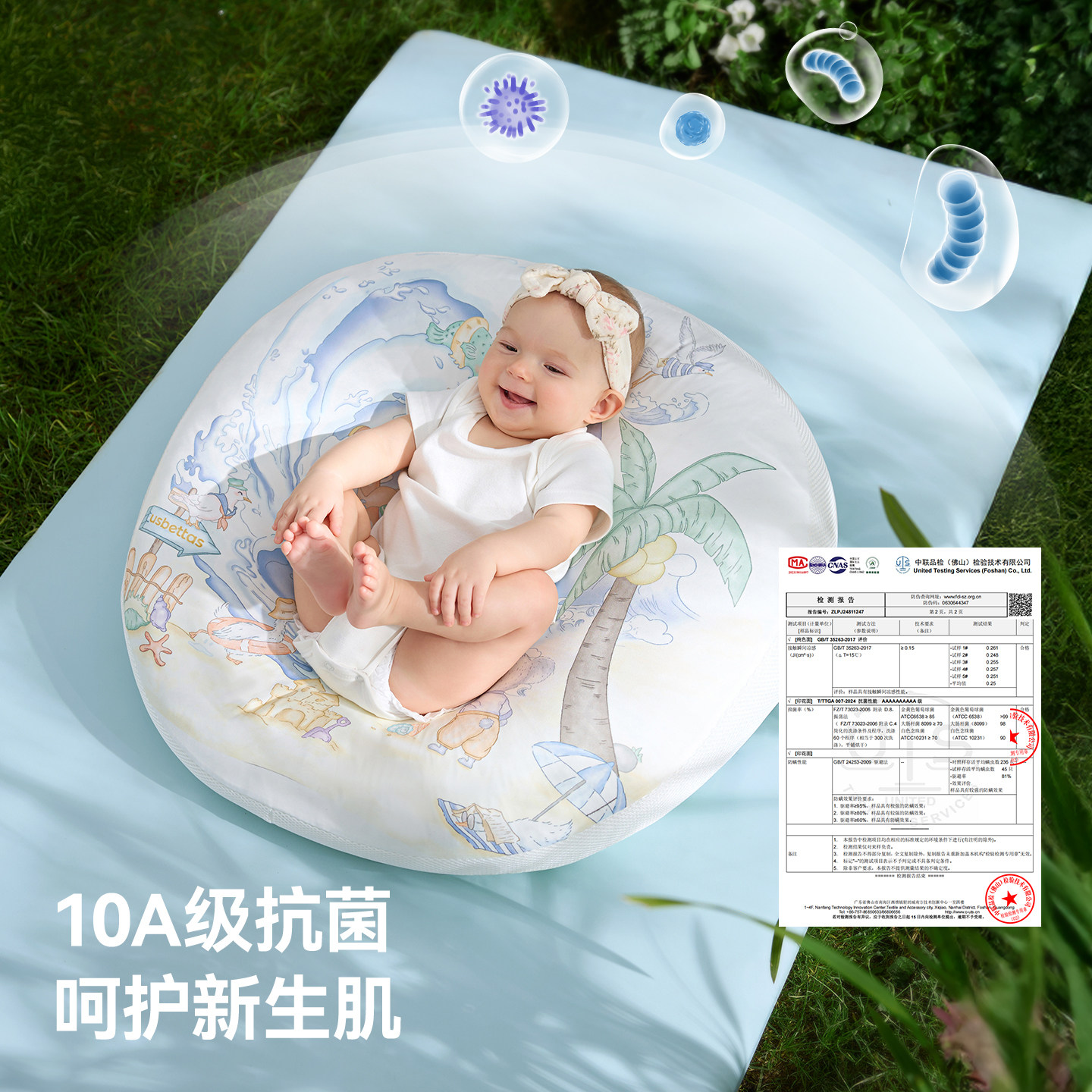贝肽斯新生儿云片枕头婴儿纯棉纱透气吸汗宝宝0到6个月防吐奶枕巾