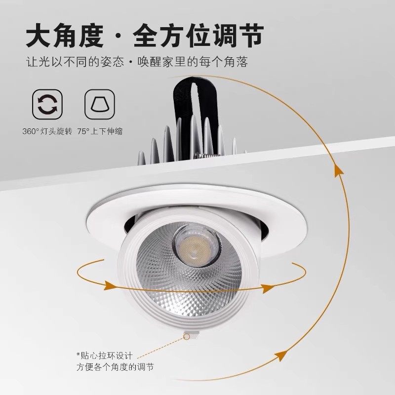 拉伸式射灯嵌入式伸缩可调节角度客厅家用象鼻灯玄关聚光灯开孔75