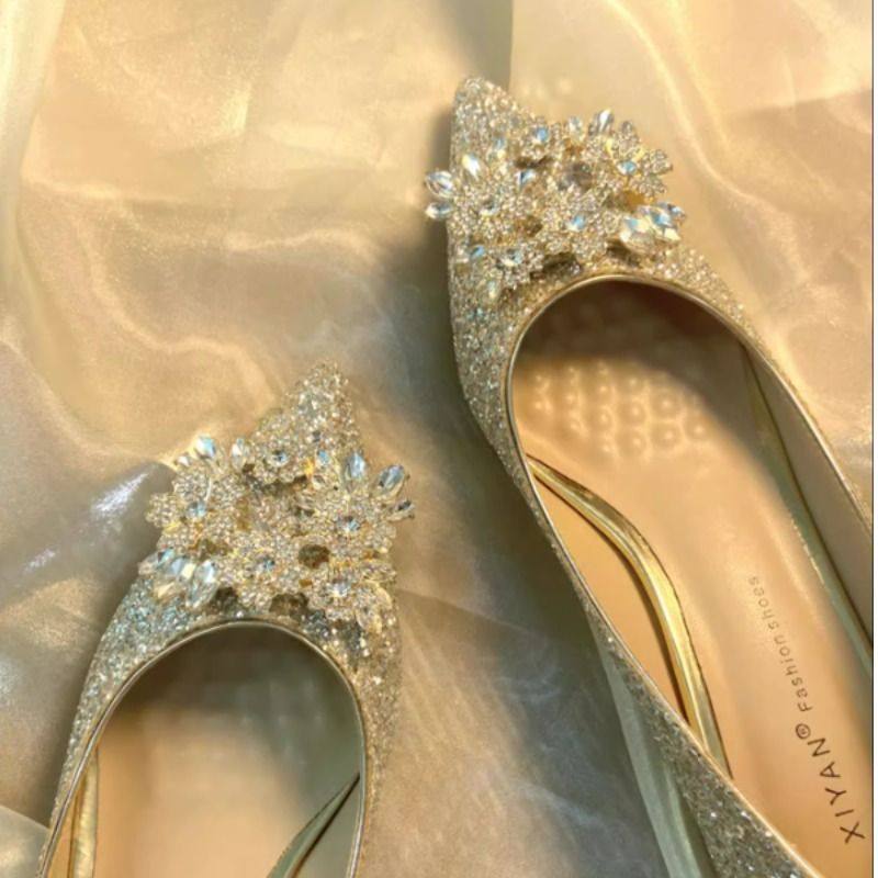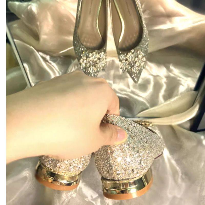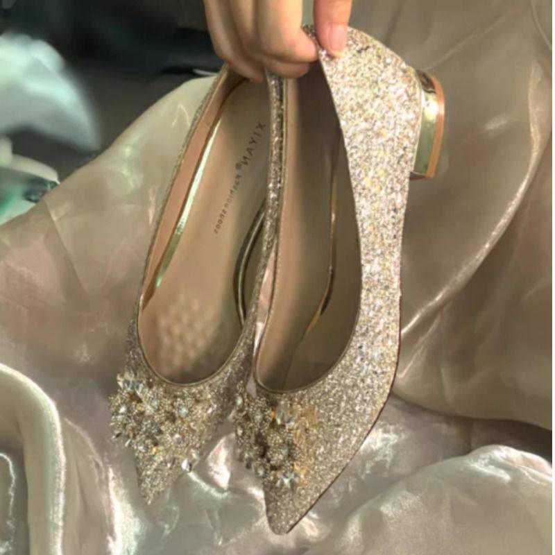 香槟色粗跟结婚鞋2025新款新娘禾秀婚纱两穿孕妇平底高跟鞋不累脚