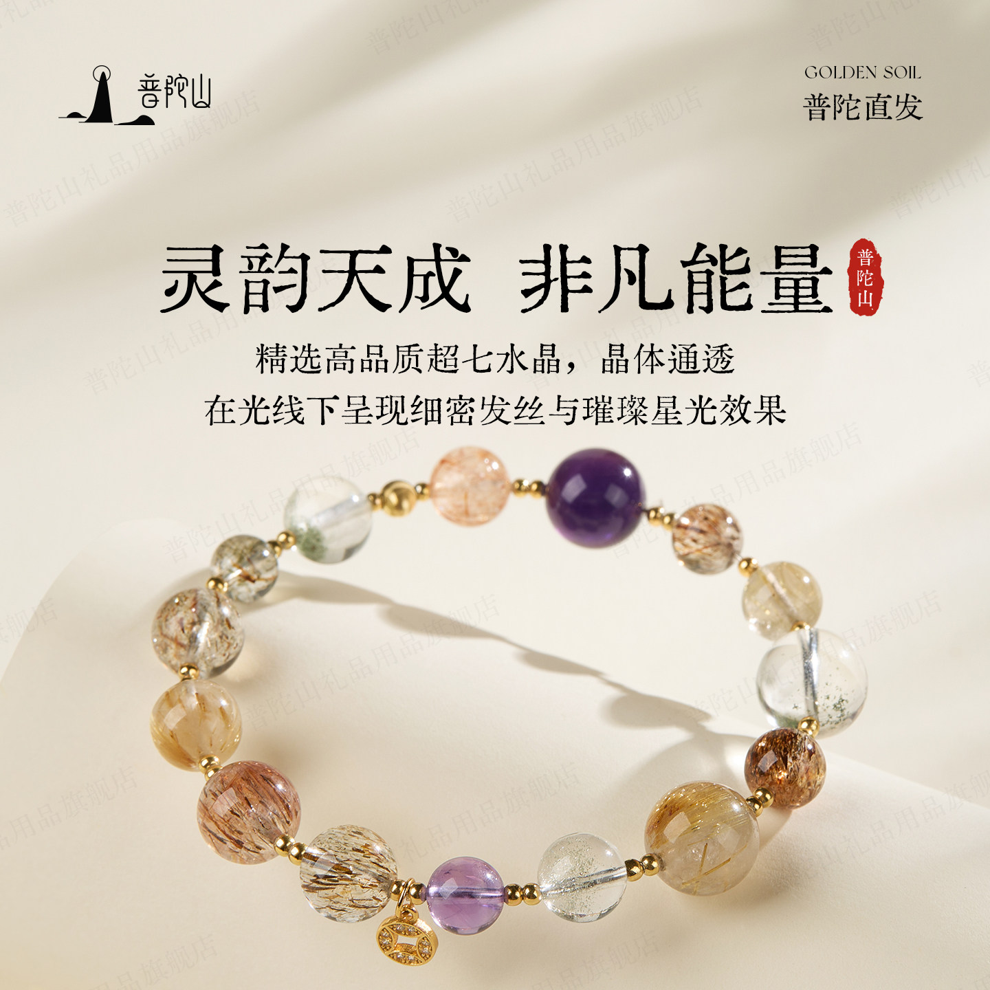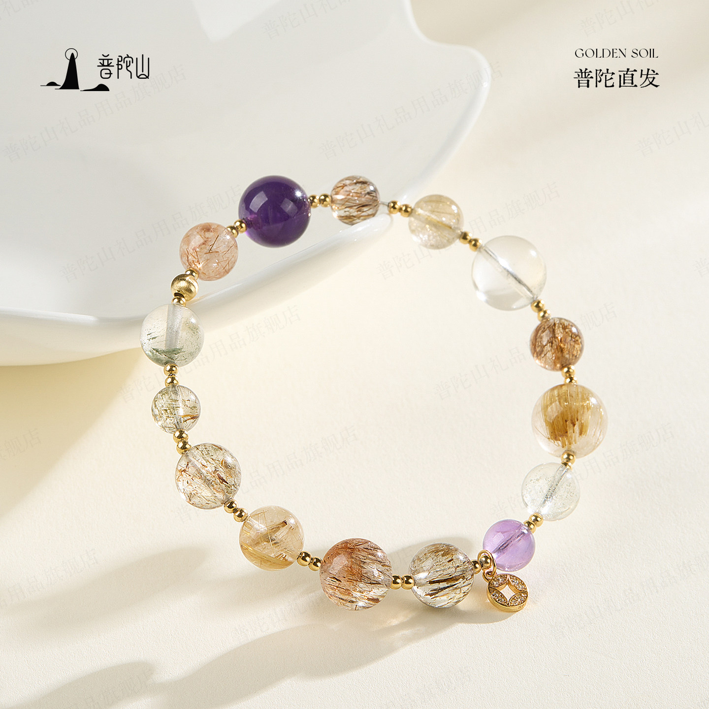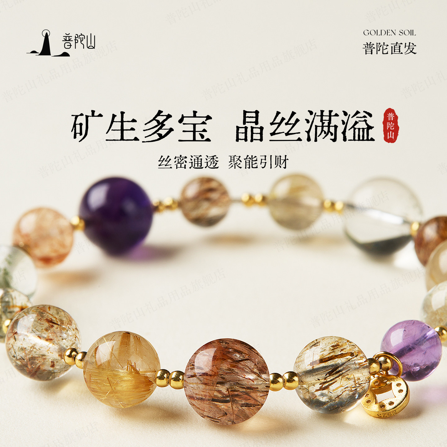 普陀山天然水晶多宝手串招财转运金光紫绕手链绝美高级感生日礼物