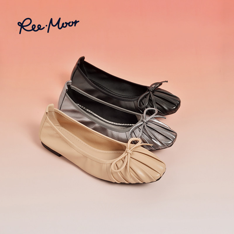 REEMOOR睿慕2025秋季新款舒适不累脚蛋卷鞋休闲羊皮平底鞋单鞋女