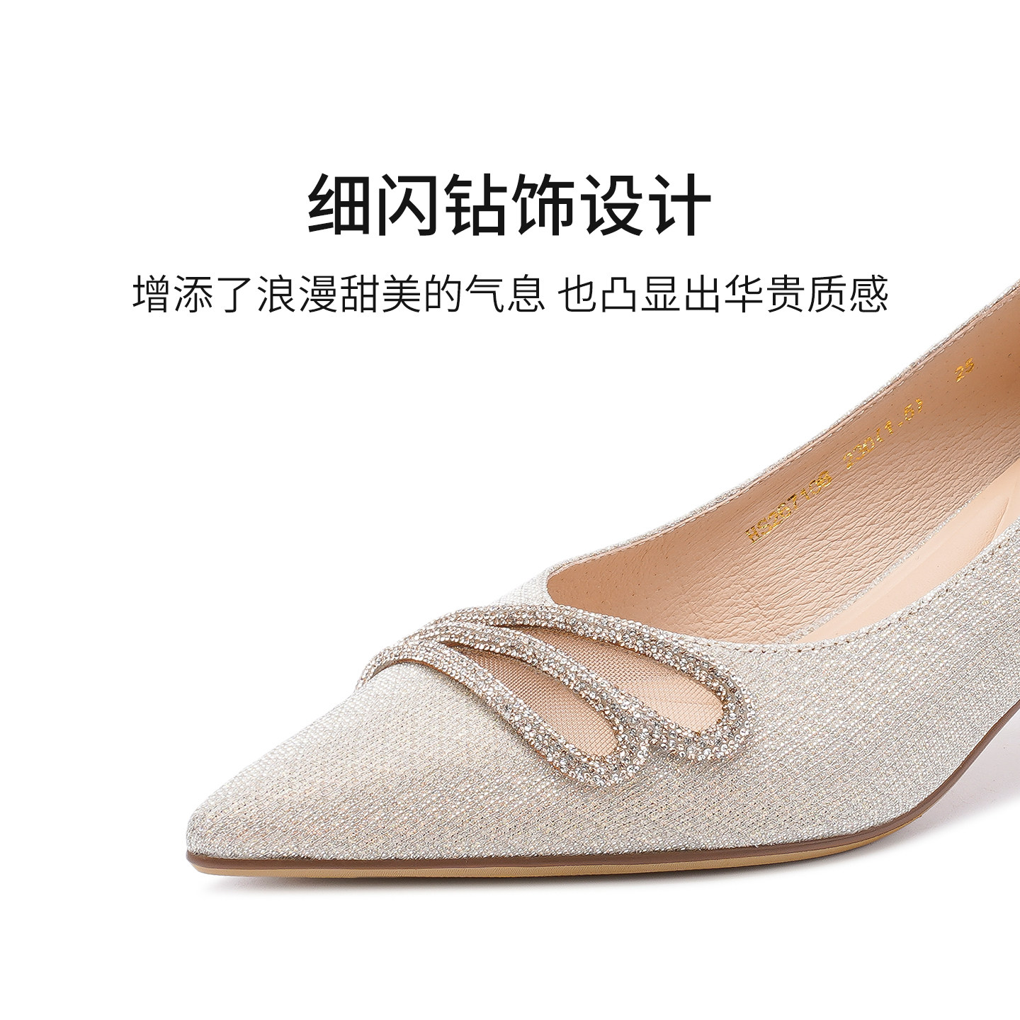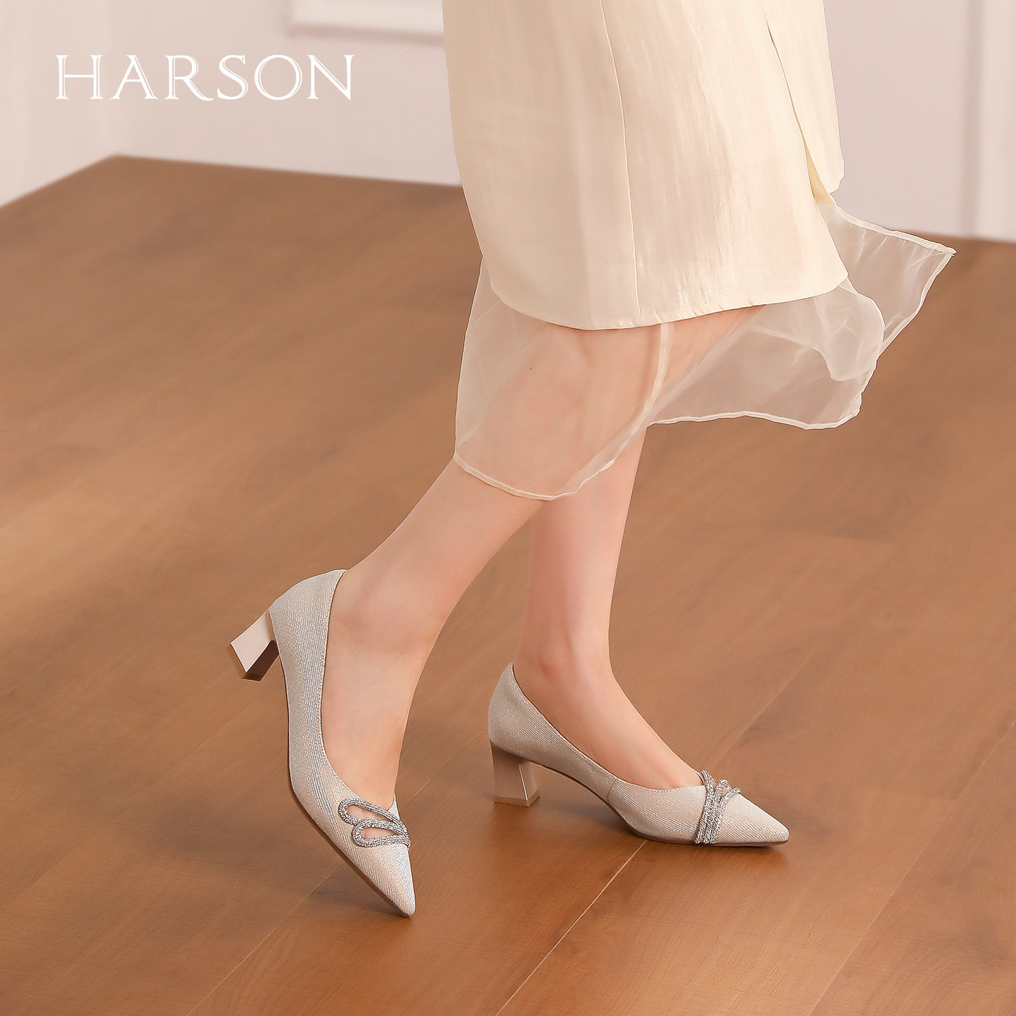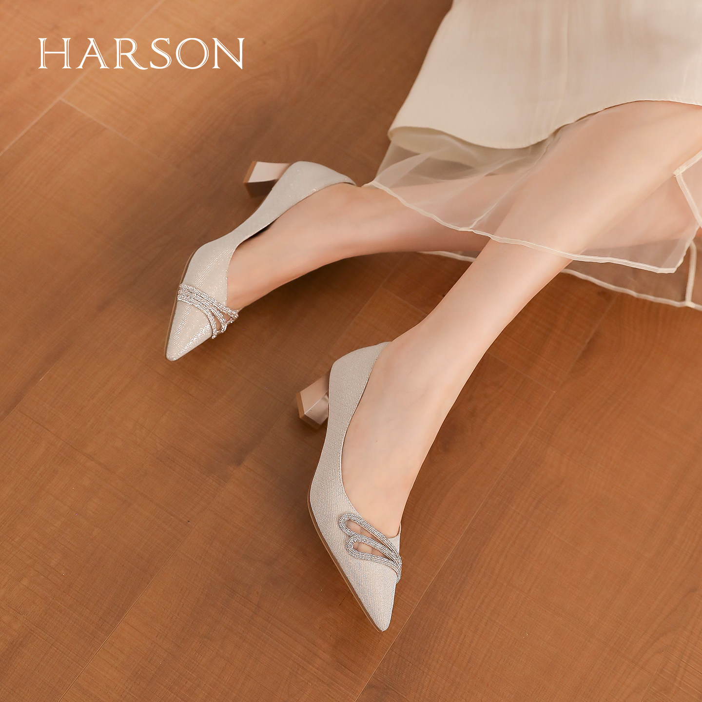 哈森优雅百搭女鞋2026新款气质细闪钻饰粗跟浅口单鞋HS267108