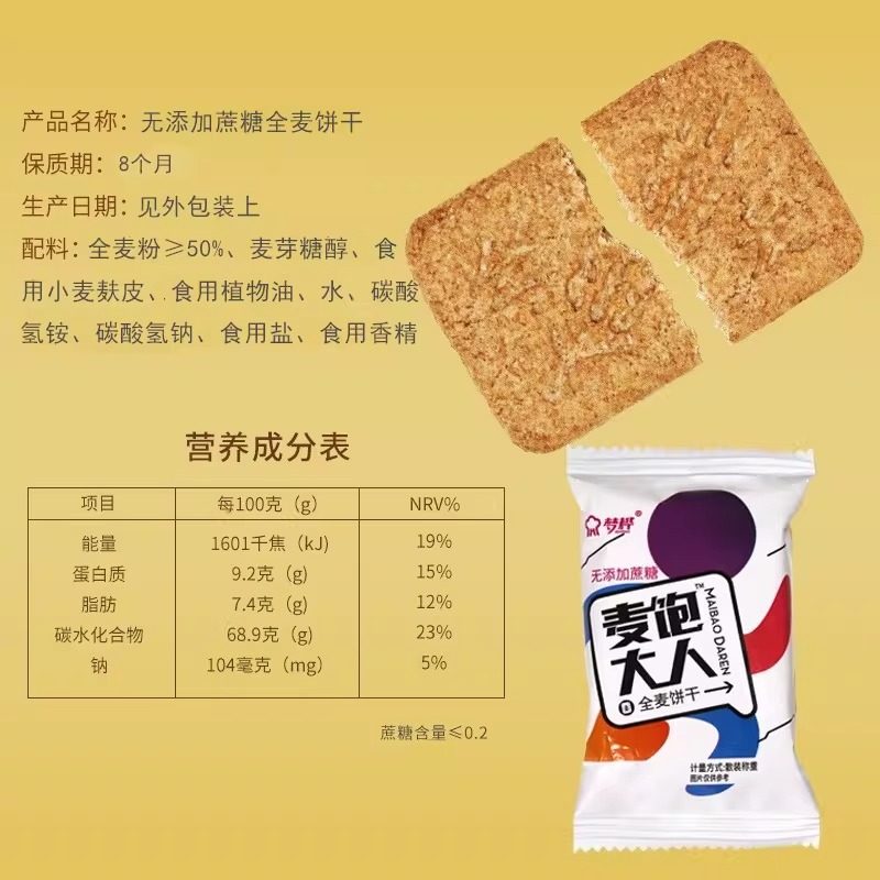 无蔗糖饱腹代餐全麦粗粮早餐饼干无糖精压缩健康食品零食