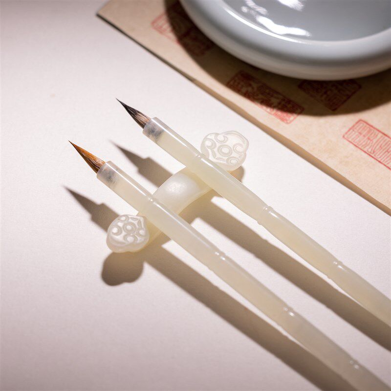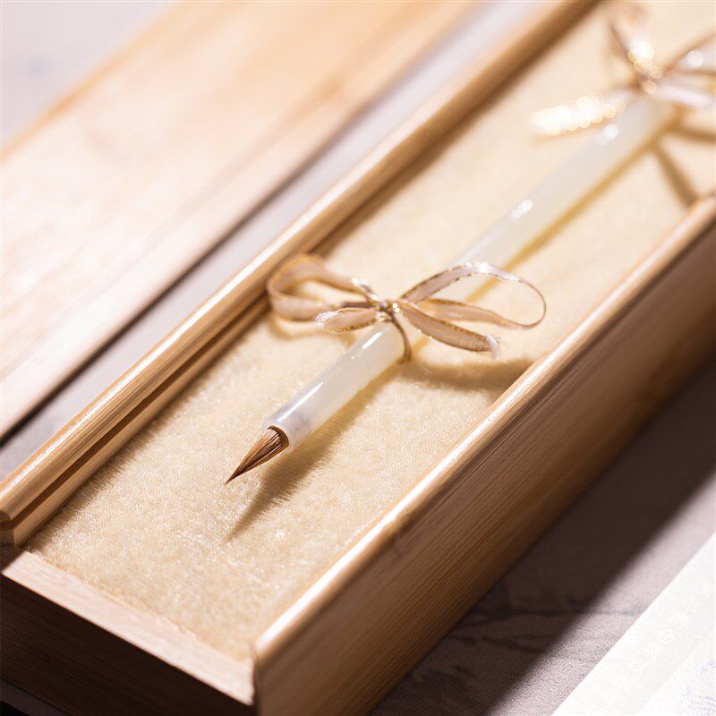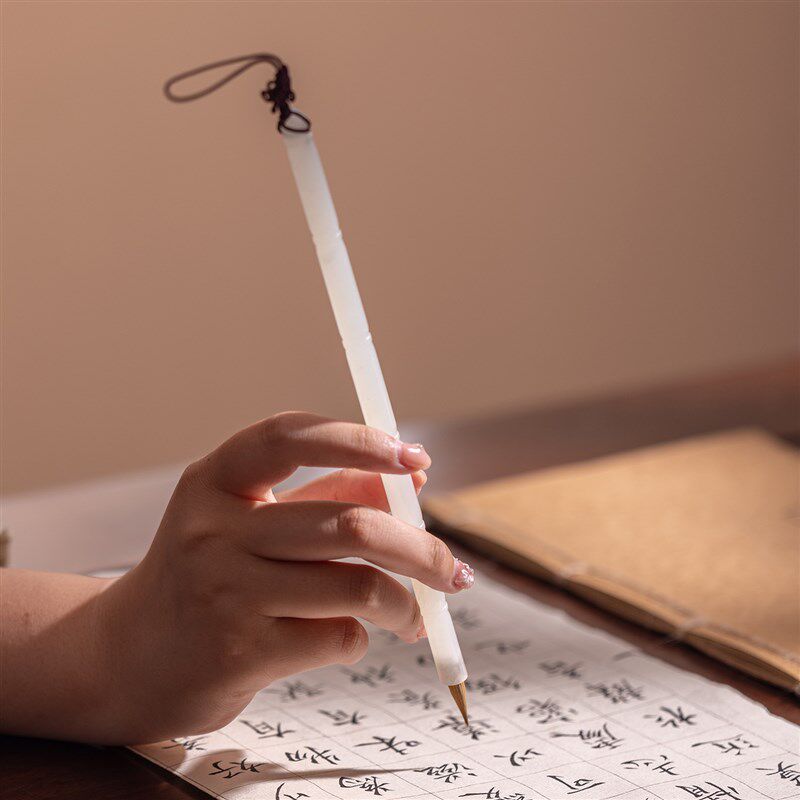 青玉案天然玉石毛笔小楷k书法专用纯狼毫紫毫专业级瘦金体岫玉玉