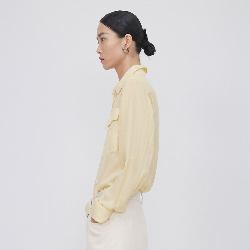 LESS春秋桑蚕真丝衬衣女简约休闲宽松工装口袋衬衫2N9211630