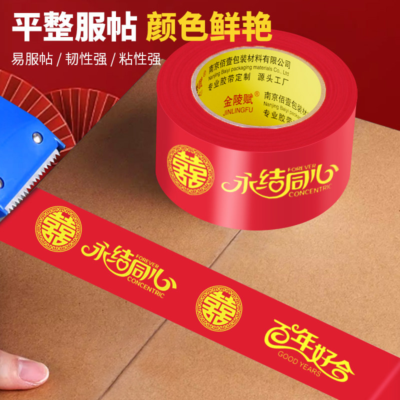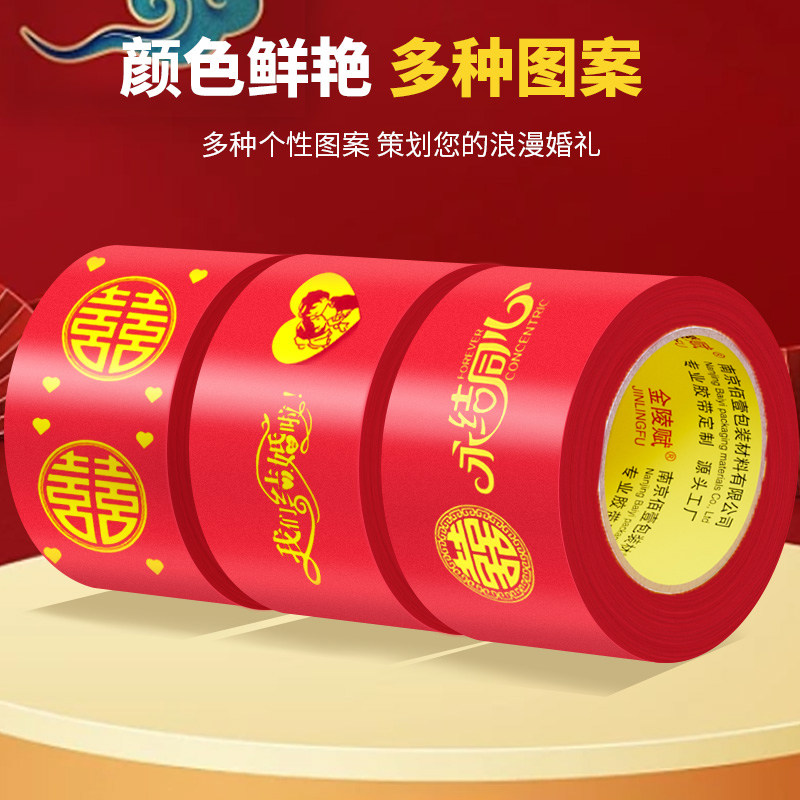 结婚双喜胶带大红色打包嫁妆行李新春喜庆专用婚房婚礼主题布置双喜封箱口高粘宽胶布福字装饰结婚用品地毯胶