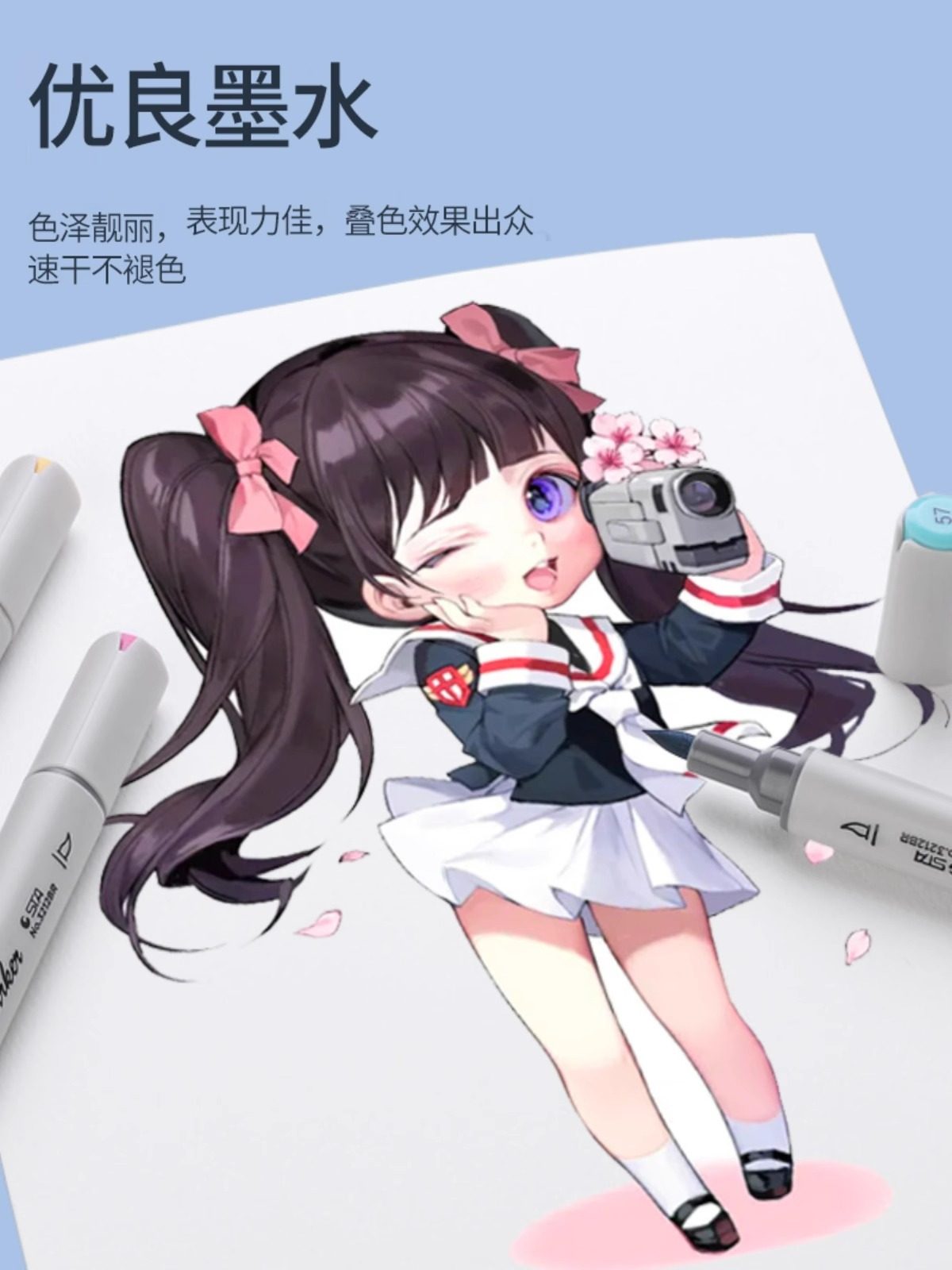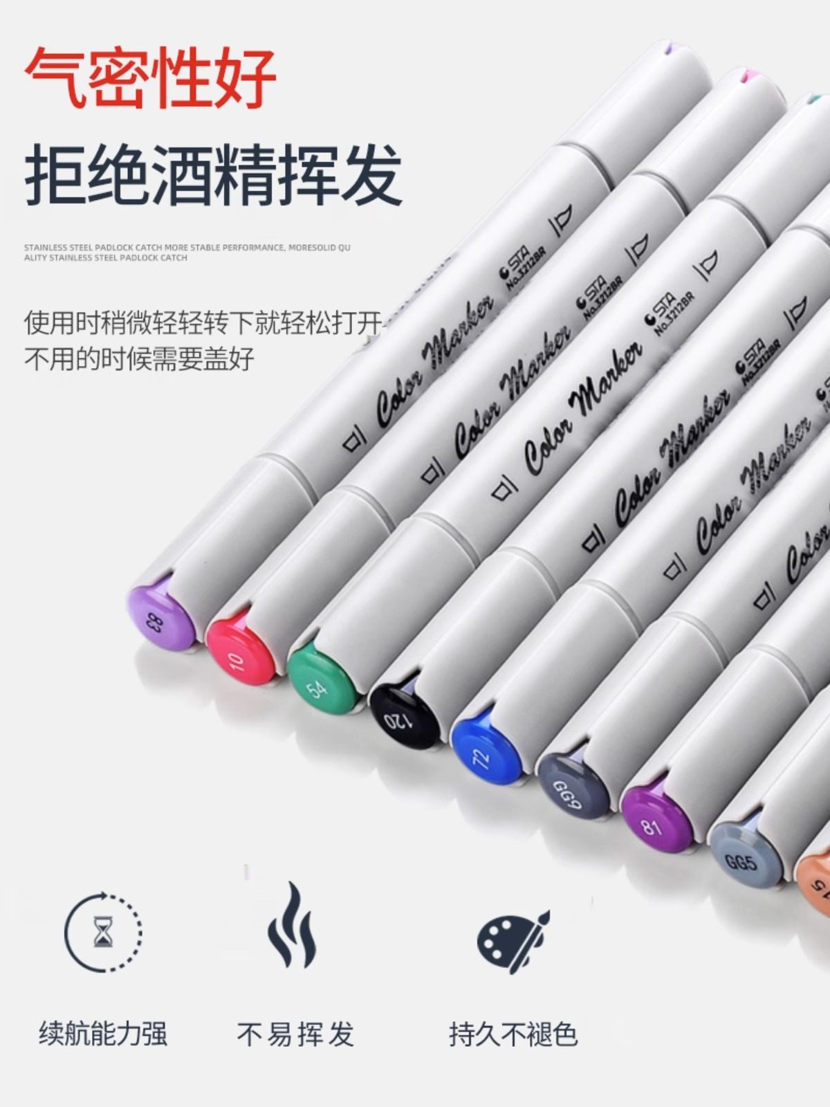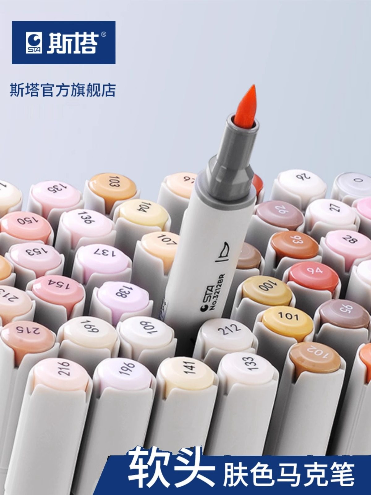sta斯塔3212BR软头酒精油性马克笔动漫学生室内套装168色多色可选