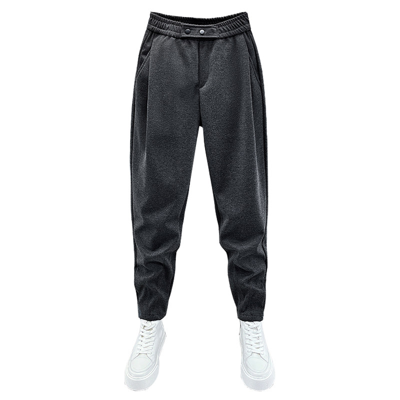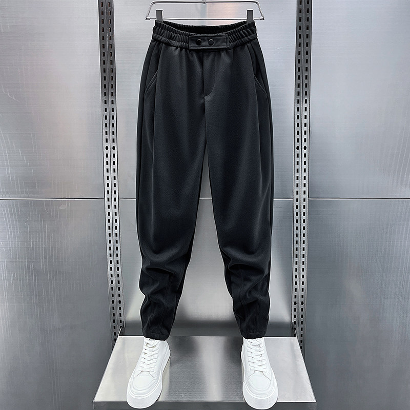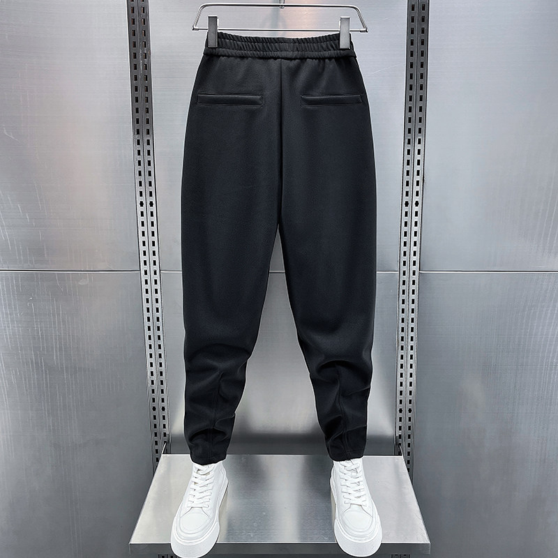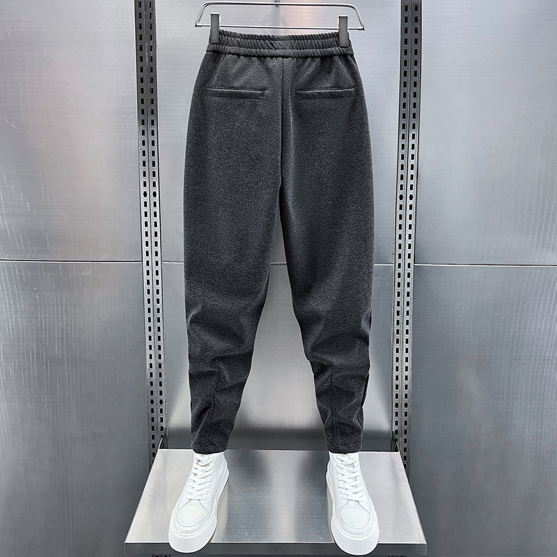 秋冬新款毛呢休闲裤男士加厚高级感小脚哈伦裤宽松痞帅纯色运动裤