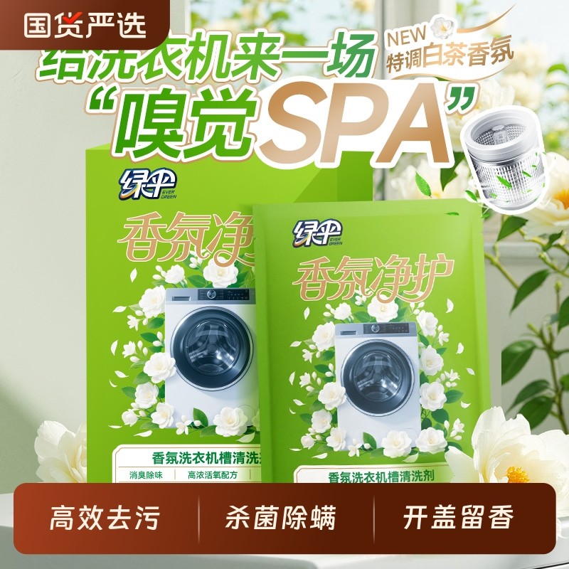 绿伞洗衣机槽清洗剂125g*3袋/盒消毒杀菌除垢去清洁滚筒内筒波轮