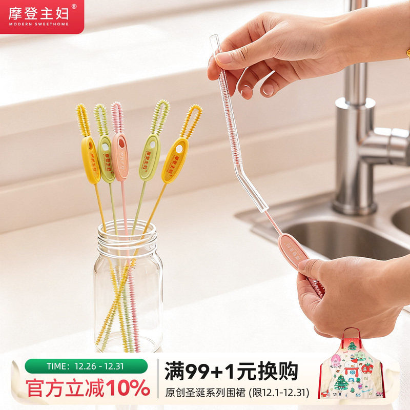摩登主妇硅胶吸管刷加长清洗缝隙刷婴儿奶瓶杯子杯盖专用清洁刷子