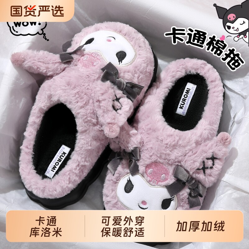 库洛米棉拖鞋女士冬季可爱外穿室内家居毛绒保暖厚底棉拖加绒居家