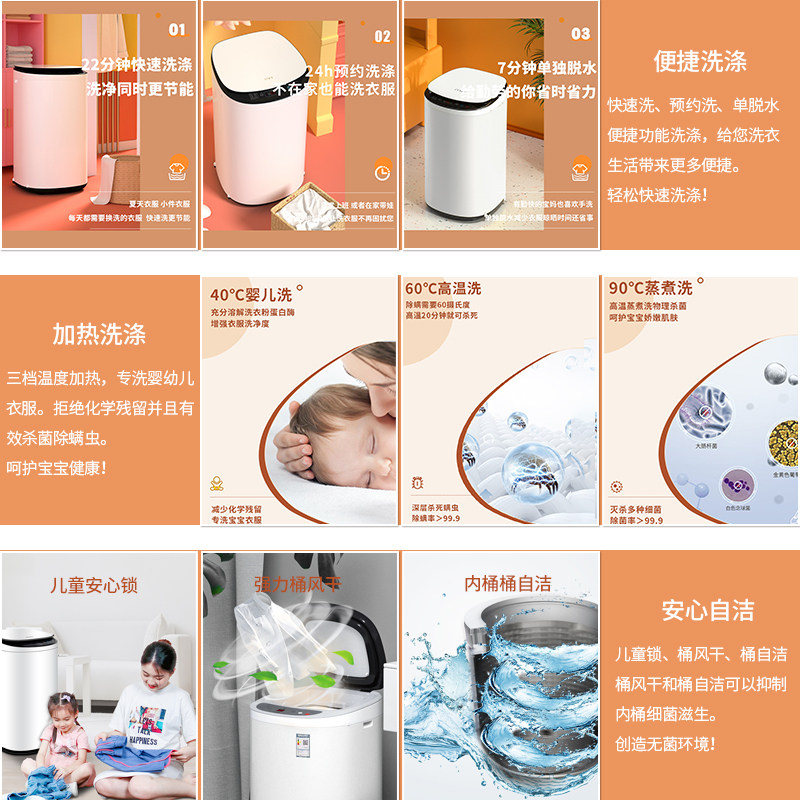 蓝光洗涤、高温煮洗、洗脱一体、杀菌除螨