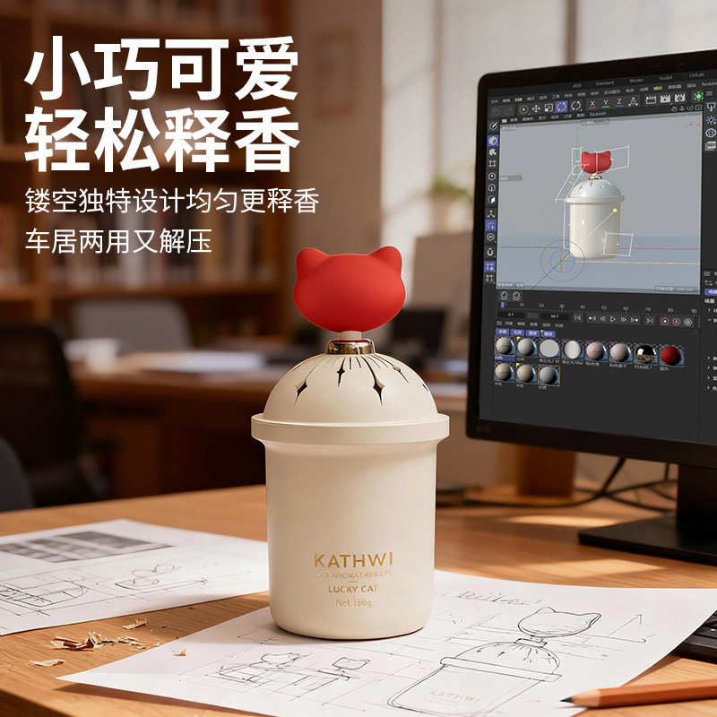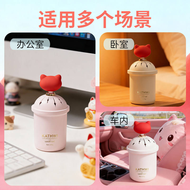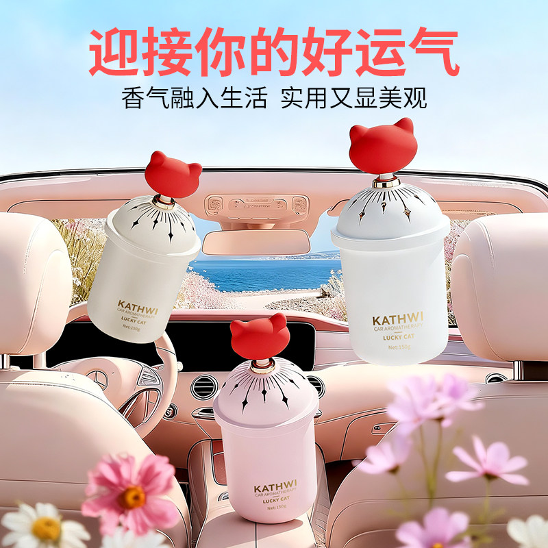 科净威幸运猫车载香薰汽车内香氛捏捏持久留香办公室除味固体香膏