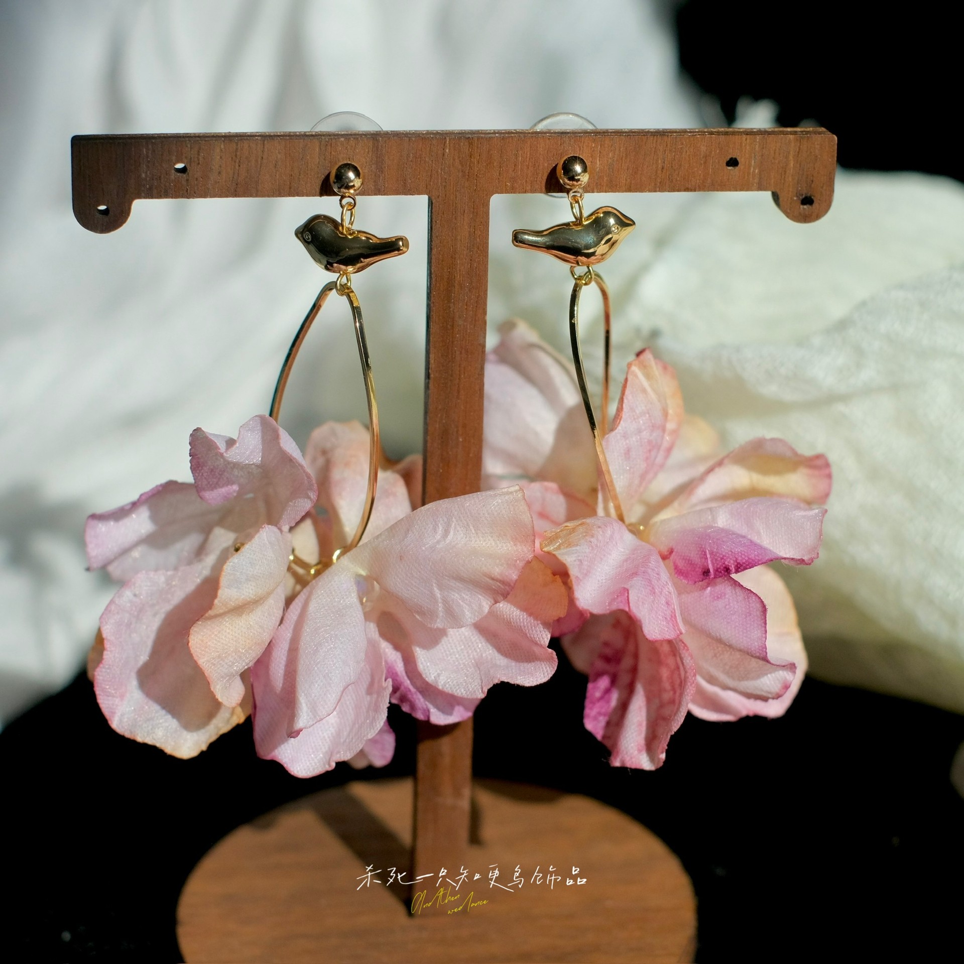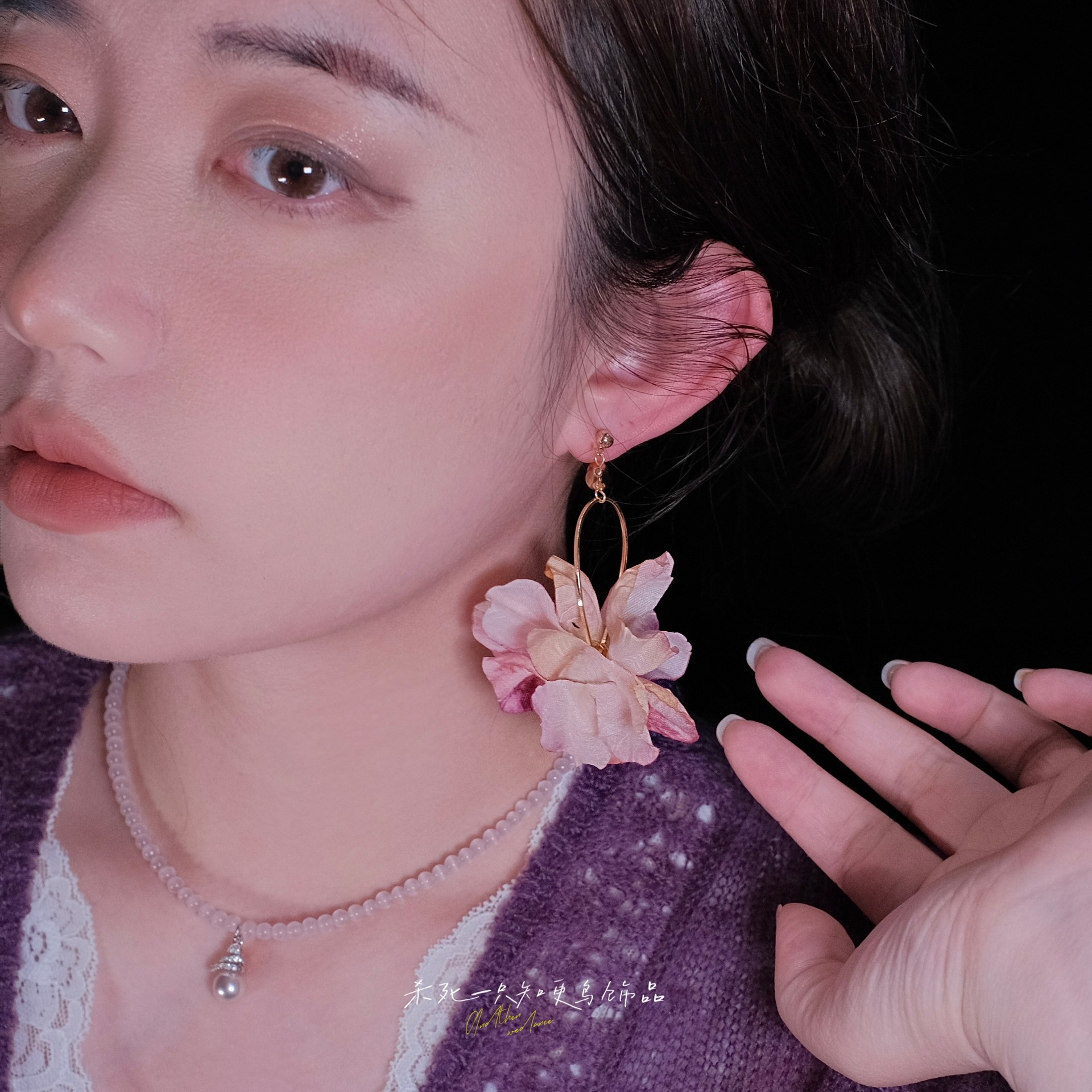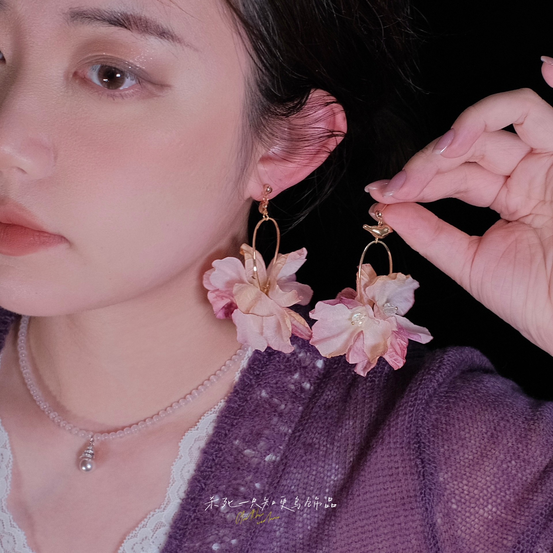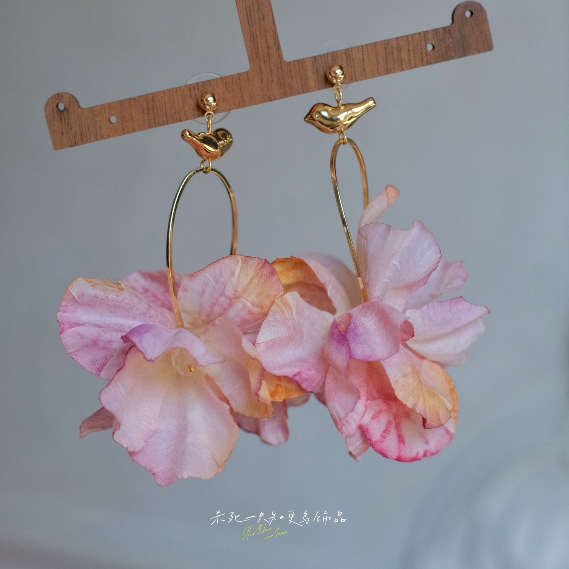 《夜莺与玫瑰》原创春夏超仙少女心粉色夸张花朵耳环耳夹度假耳饰