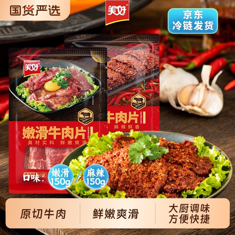 美好嫩滑牛肉片150g麻辣牛肉半成品火锅串串调理食材烧烤牛排原切