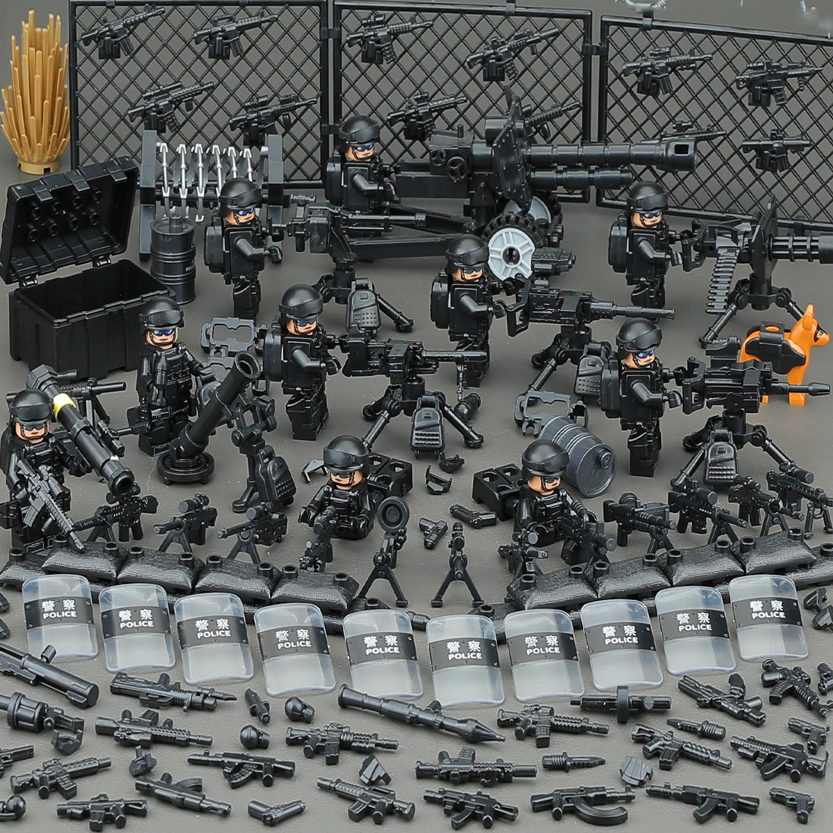 军事积木特种兵人仔士兵城市特警小人偶武器枪男孩子拼装玩具警察