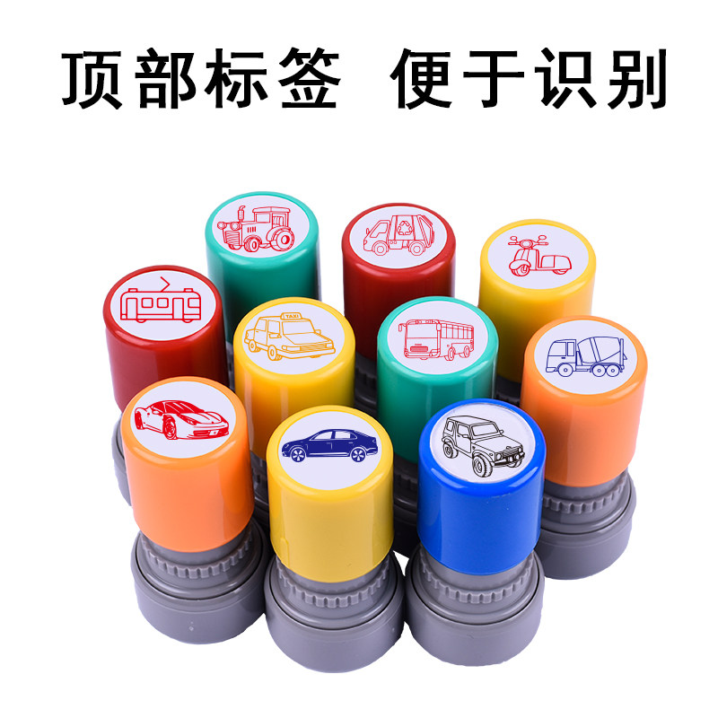 定制汽车卡通印章小推车电动车三轮车挖掘机儿童盖消防车油罐车
