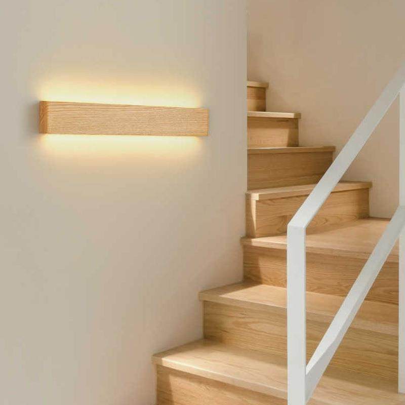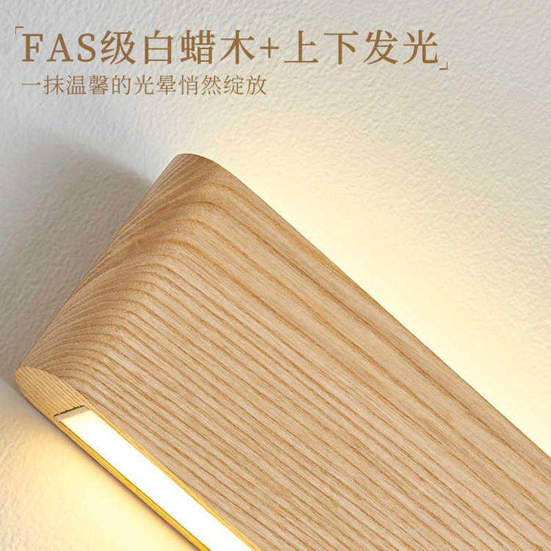 长条壁灯白蜡木原木风客厅背景墙灯设计师款卧室床头灯楼梯过道灯
