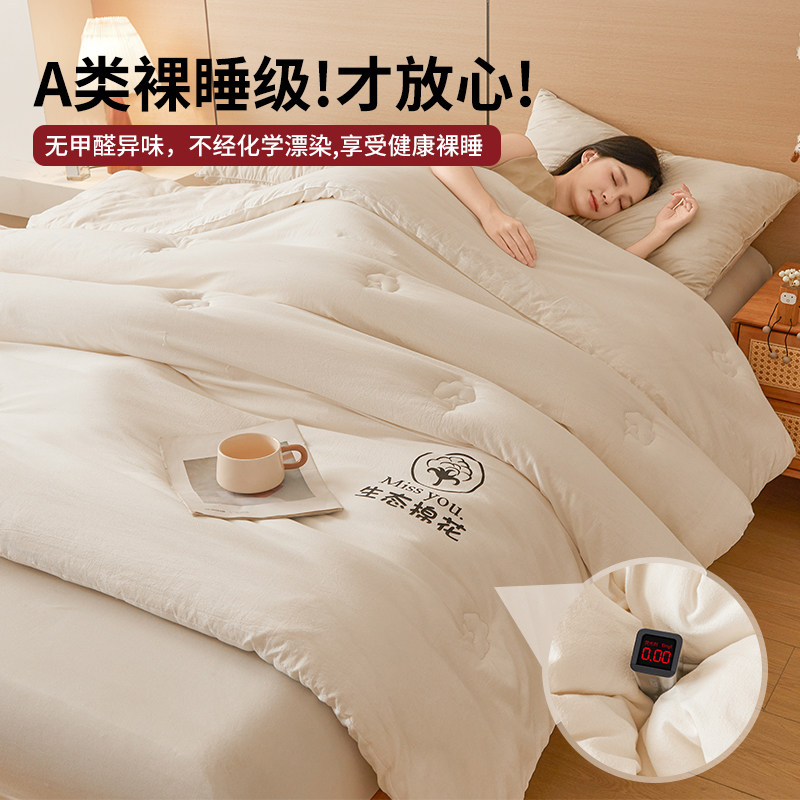 水星家纺棉花被60S长绒棉A类棉被加厚纯棉被子春秋被芯四季被冬被