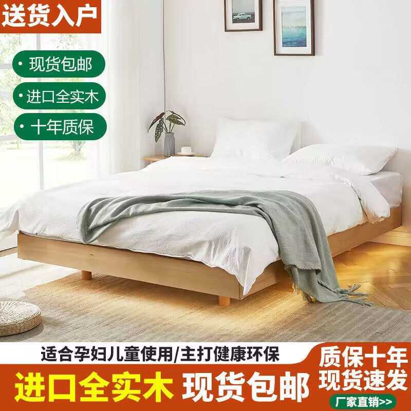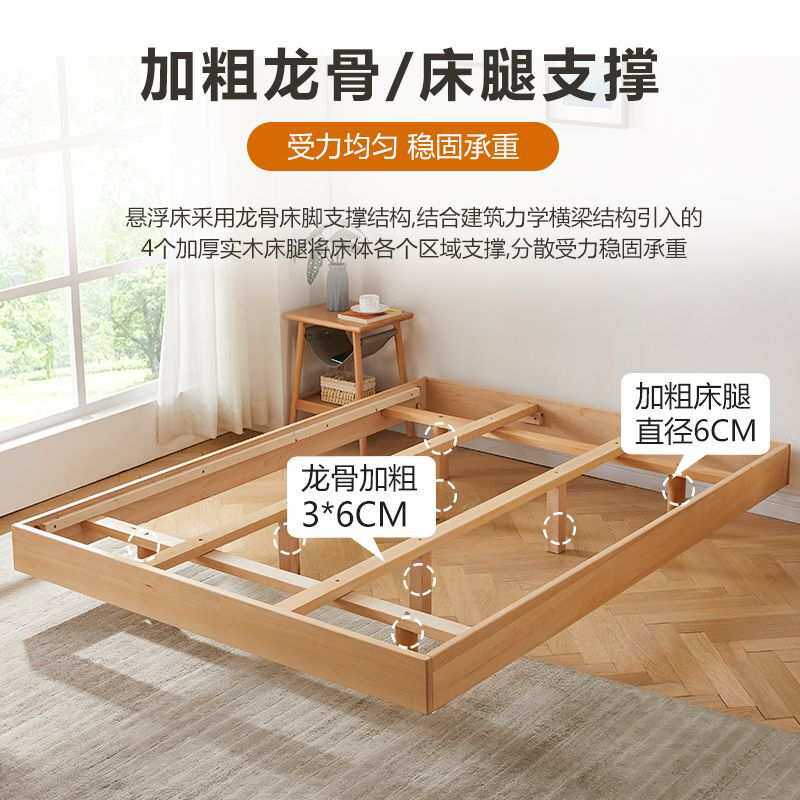 北欧全实木榉木悬浮床1.8m卧室婚床简约现代家用小户型1米单人床