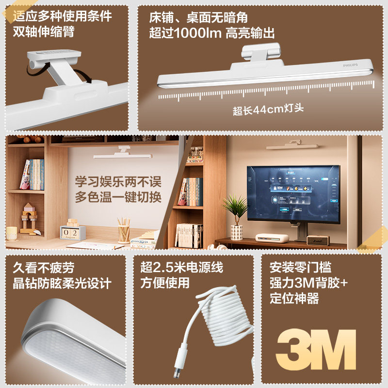 飞利浦酷侠护眼台灯大学生宿舍书桌壁挂学习专用灯床上照明酷毙灯