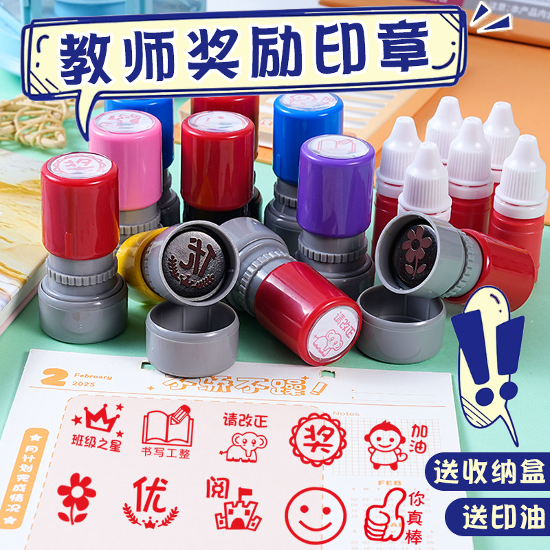 小红花教师鼓励评语作业印章送印油收纳盒