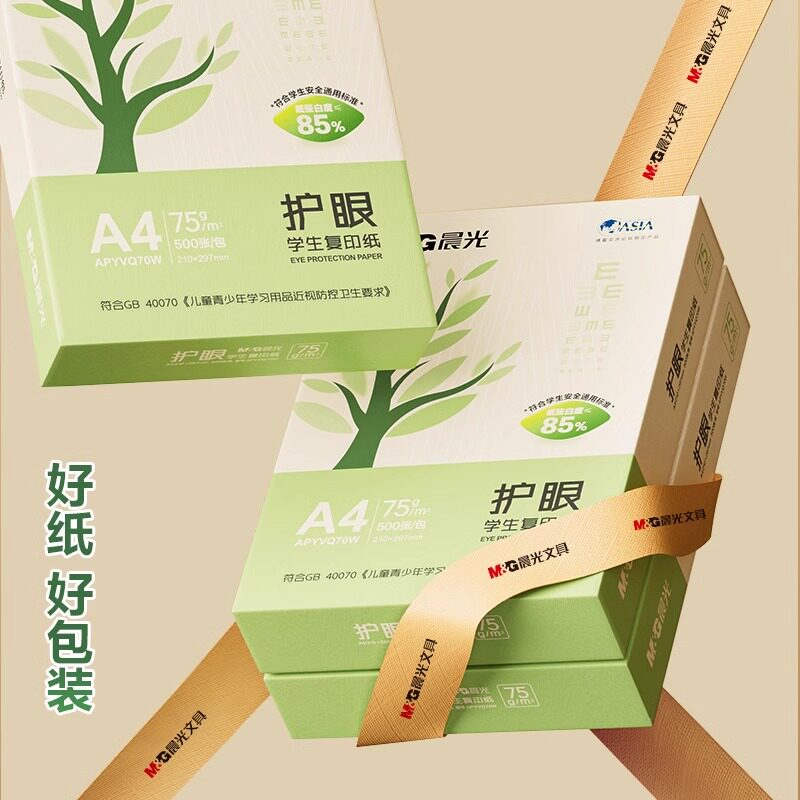 晨光护眼75g复印纸A4打印纸一包500张学生用纸a4纸草稿办公用品