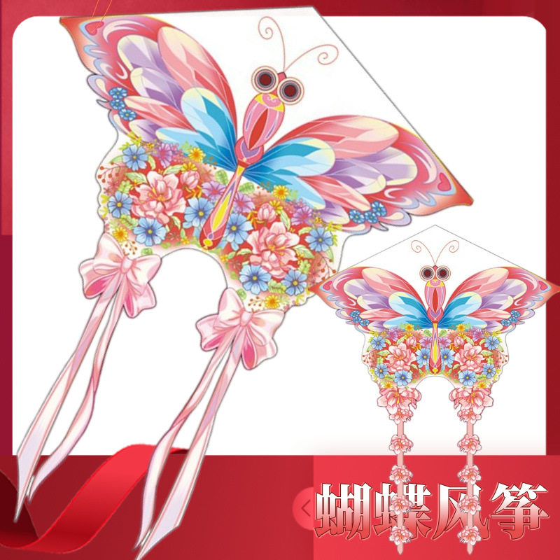 潍坊风筝新款蝴蝶卡通长尾情侣蝴蝶易飞成人蝴蝶风筝地摊广场