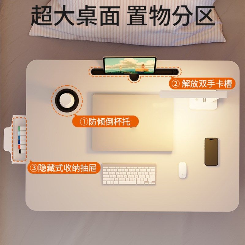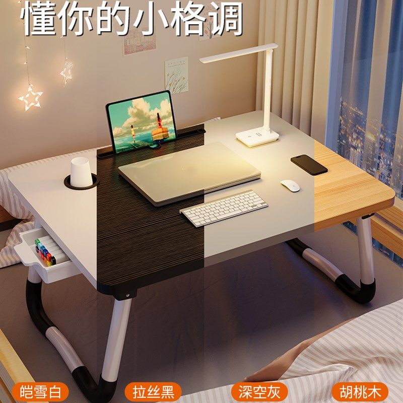 可升降折叠床上小桌子简约宿舍学生写字床上书桌学习调节高度支架家用卧室坐地飘窗懒人笔记本电脑办公小桌板