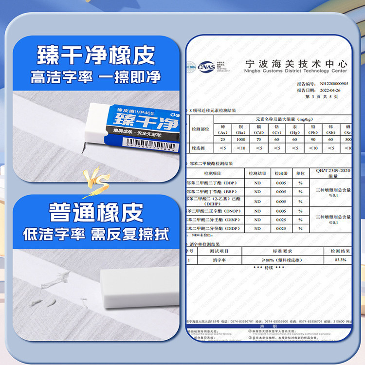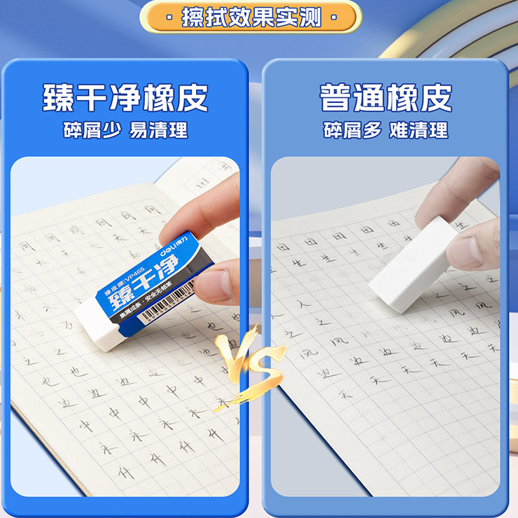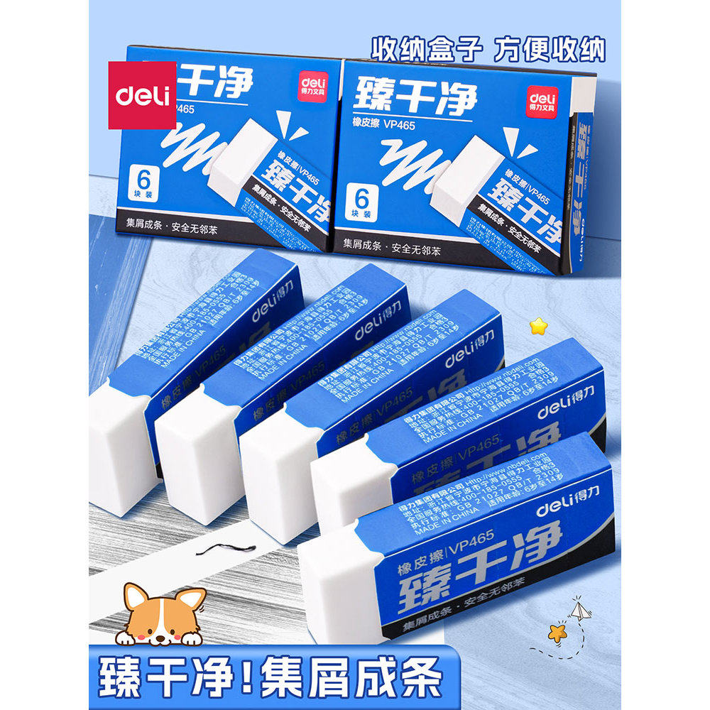 得力臻干净橡皮擦小学生专用无屑干净幼儿园专用无擦字毒可成条不留痕日常学习用品无毒无屑不留痕儿童橡皮檫