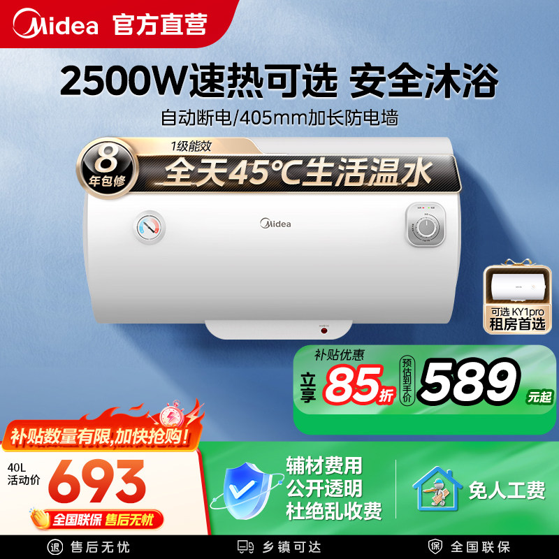 美的电热水器A5家用卫生间洗澡40升一级能效节能租房速热官方旗舰