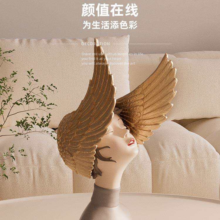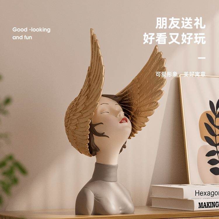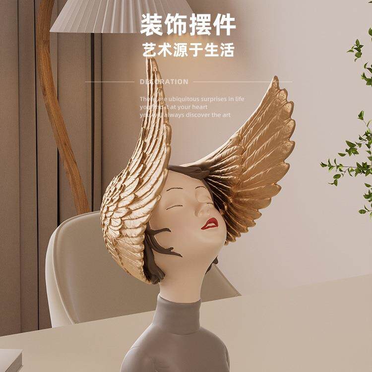 北欧轻奢客厅摆件梦想翅膀女孩艺术电视柜玄关样板间创意软装饰品