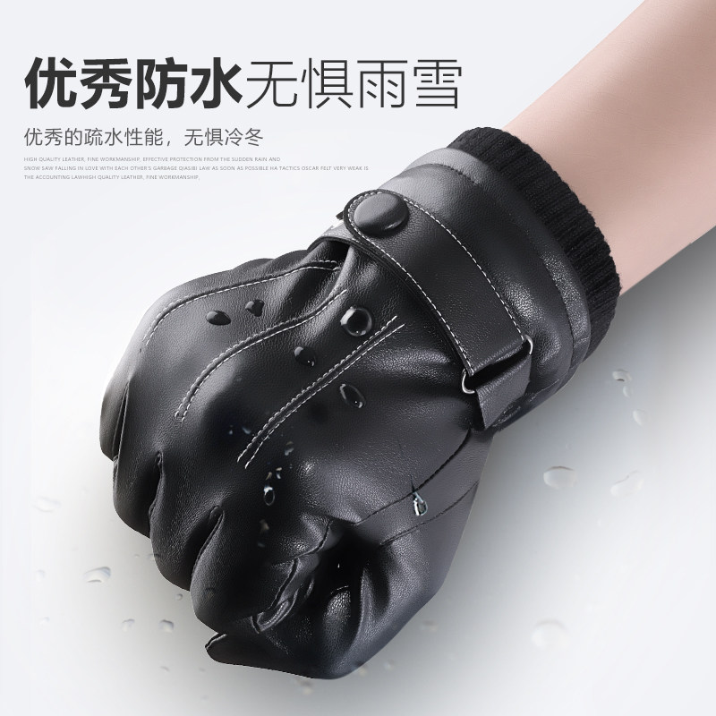皮手套男士冬加绒加厚骑车防风防水保暖摩托车棉冬季骑行手套防寒