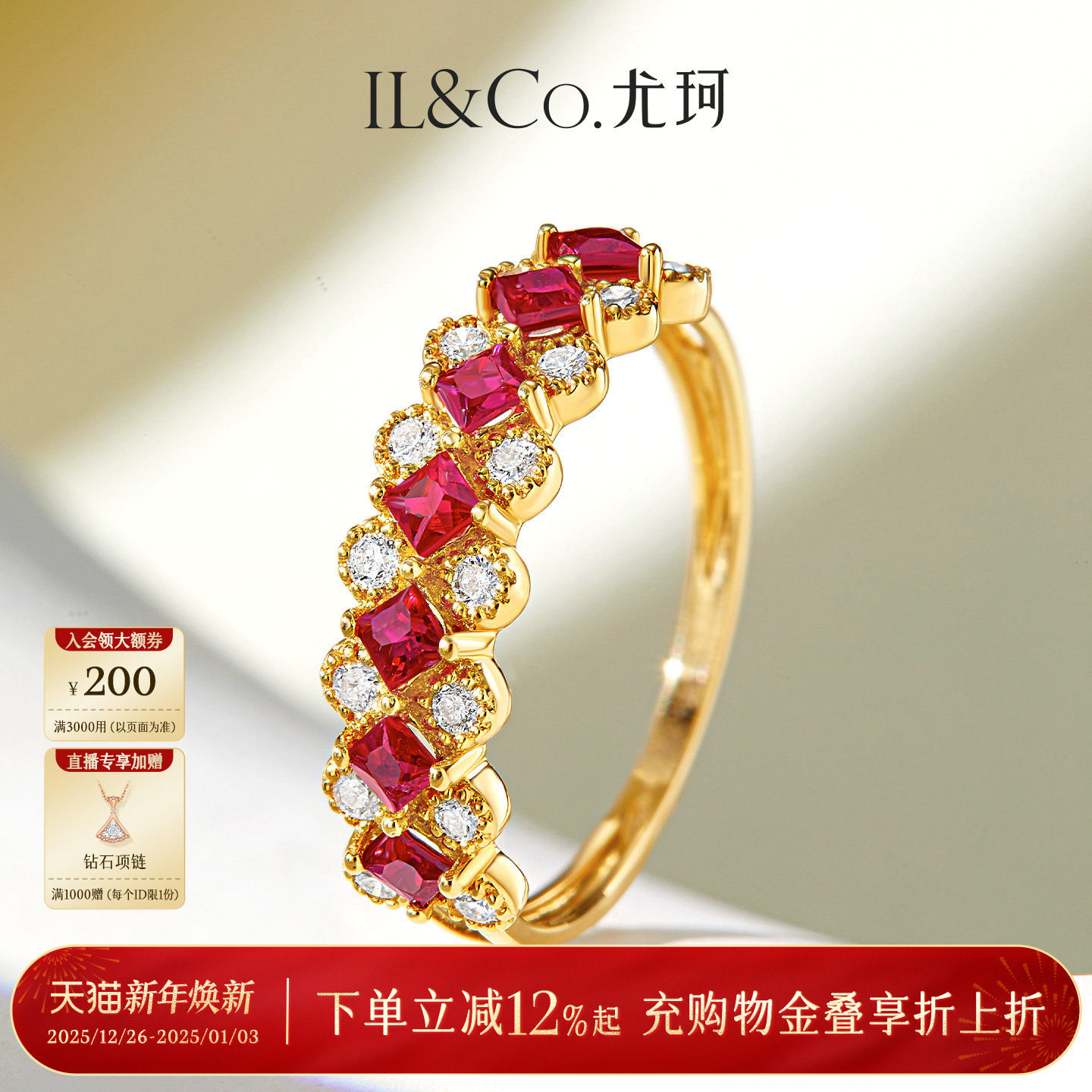 ILCO尤珂 「浪漫蔷薇」天然红宝石戒指18K金钻石宝石镶嵌蕾丝排戒