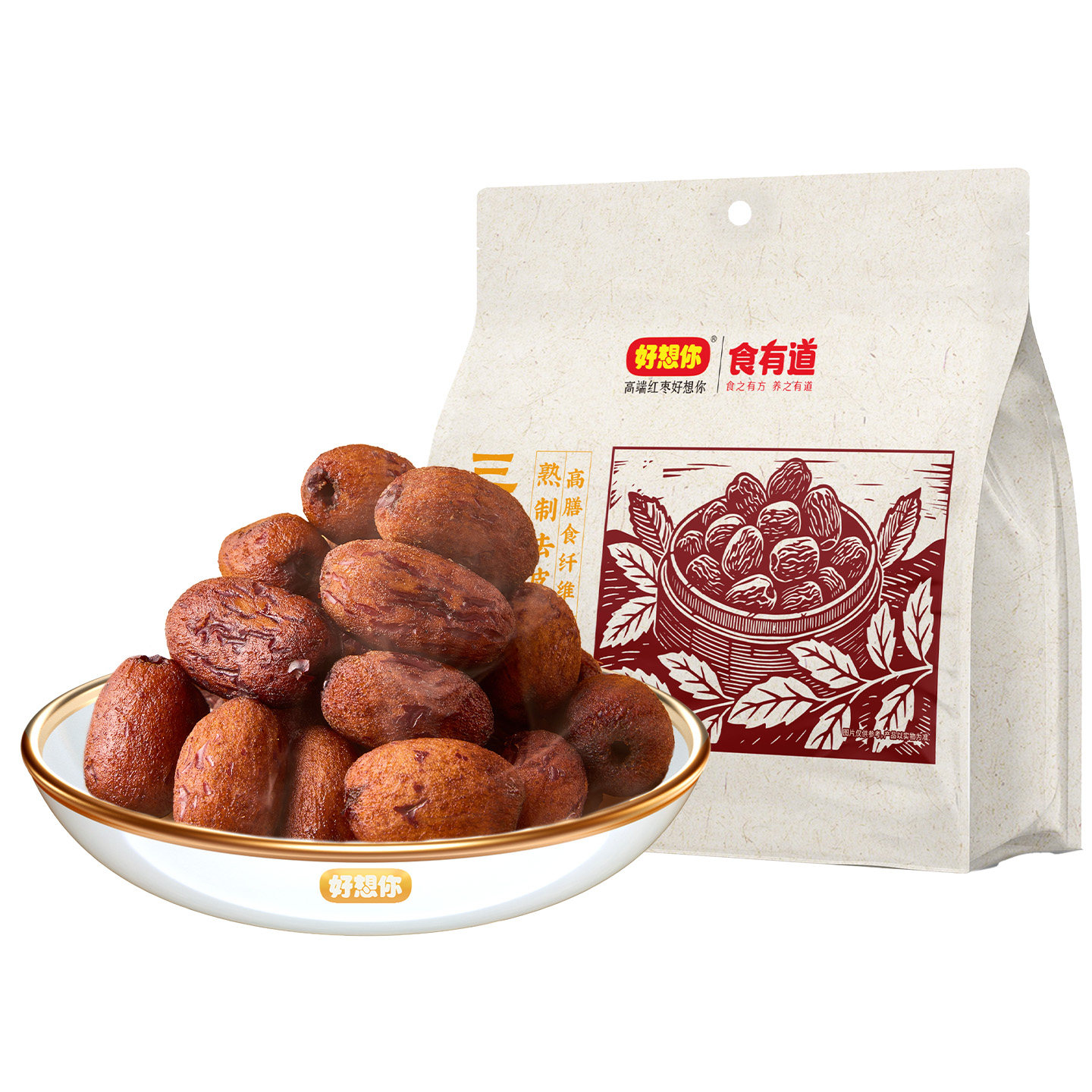 好想你三蒸三制枣黑金枣新疆红枣三蒸三晒枣去皮去核0添加食有道