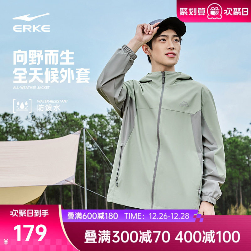 鸿星尔克外套男2025冬季新款男士户外防泼水冲锋运动夹克上衣风衣
