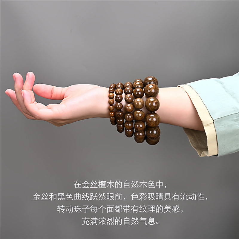 正宗金丝檀木手串精品沉水20顺纹素珠圆满款小众佛珠手链情侣