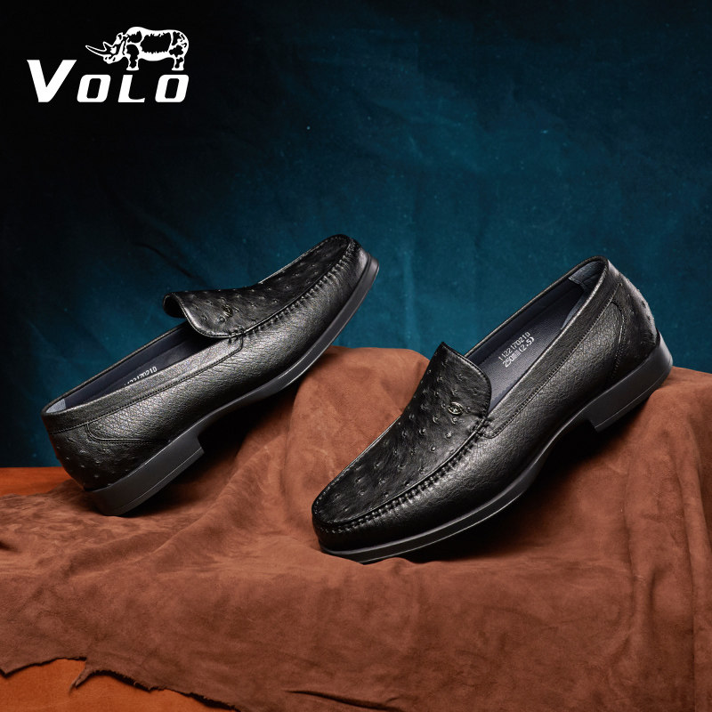 【断码特价】VOLO犀牛豆豆鞋男款真皮乐福鞋休闲男士一脚蹬乐福鞋