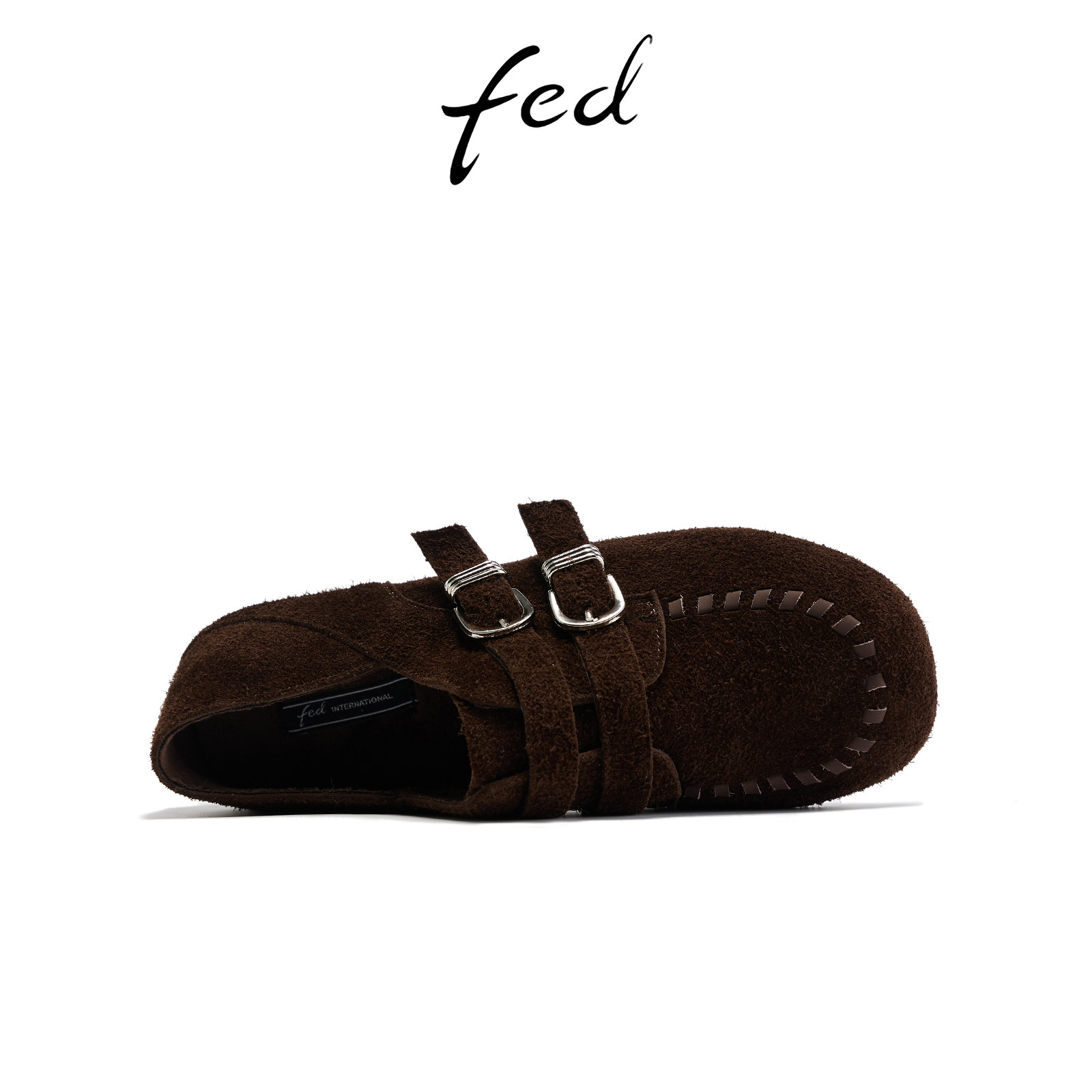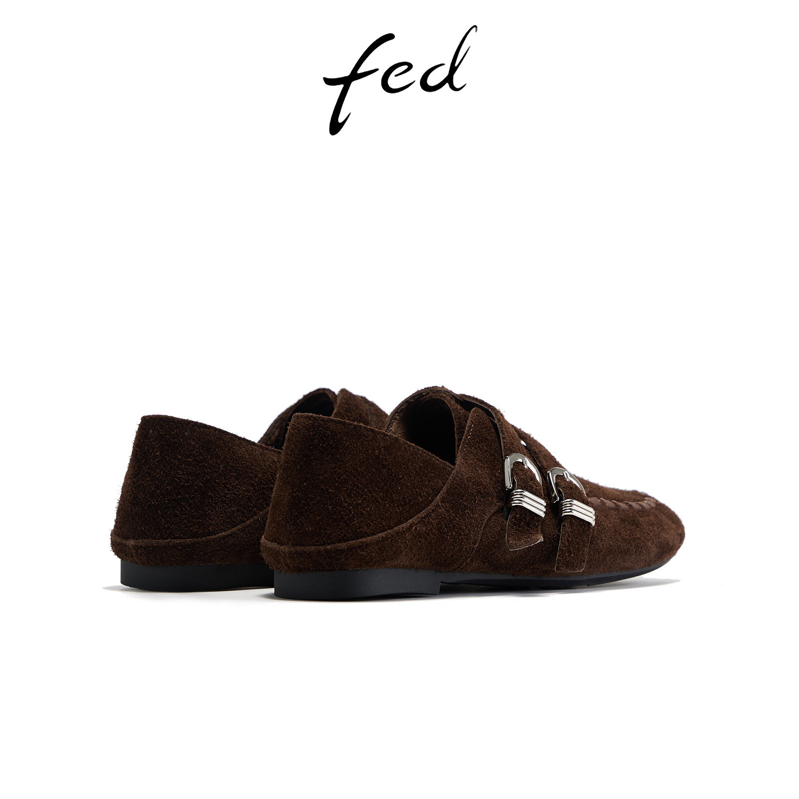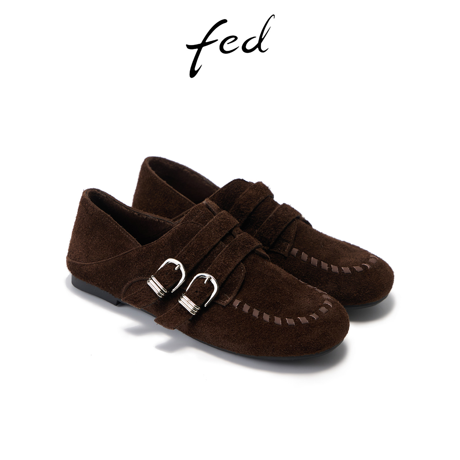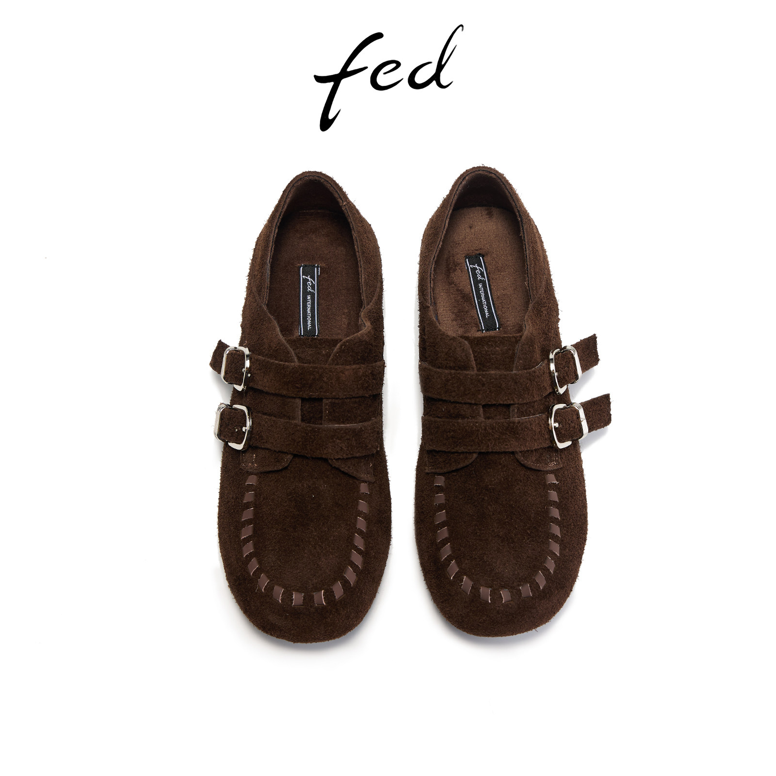 fed加绒乐福鞋冬季新款女鞋复古单鞋绒面通勤鞋女款S1028-ZFA367