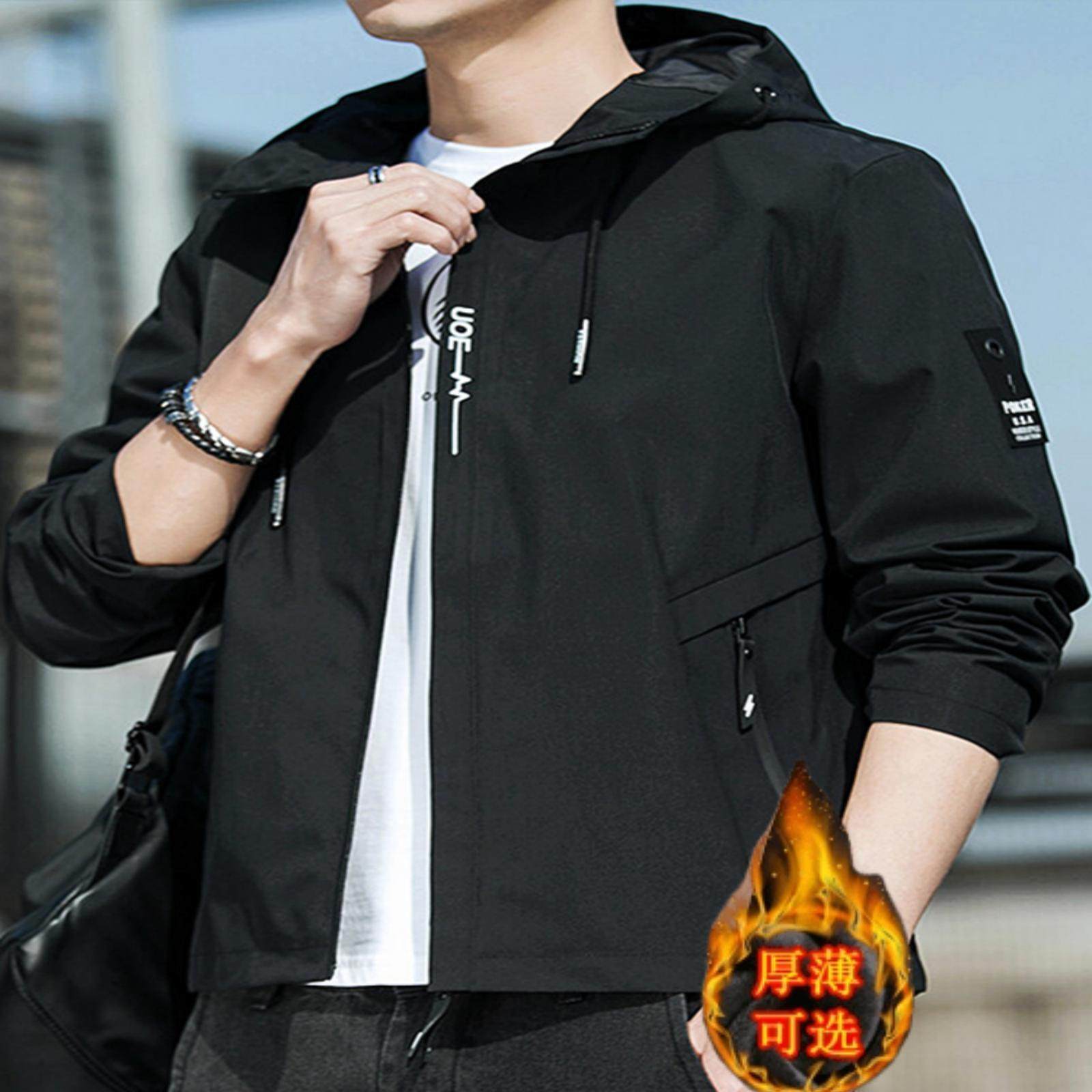 连帽夹克外套男款春秋冬季新款运动休闲百搭冲锋衣风衣男士上衣服