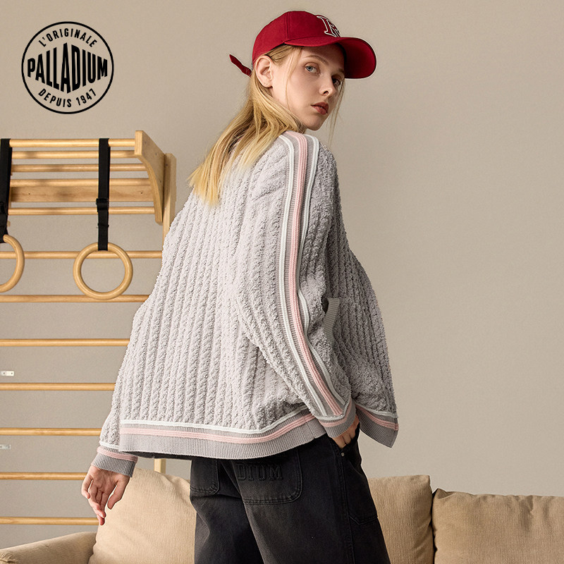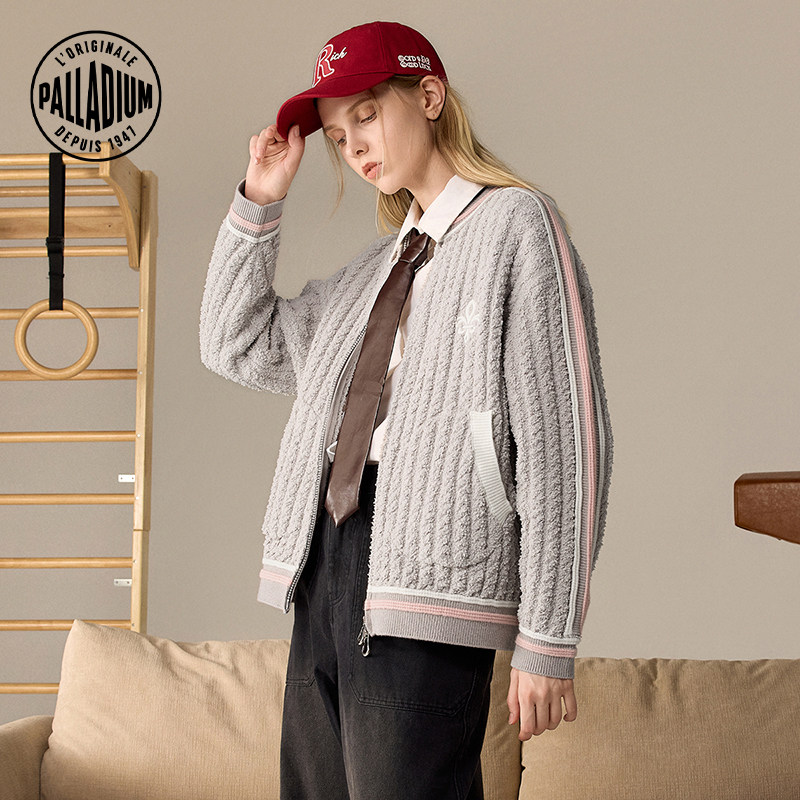 PALLADIUM帕拉丁秋冬新品复古运动撞色女款开襟毛衫外套1912600