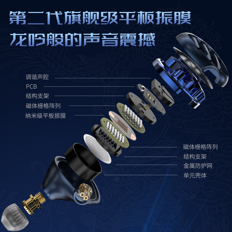 TRN青龙旗舰级平板振膜耳机HiFi高音质有线入耳式监听发烧级耳塞