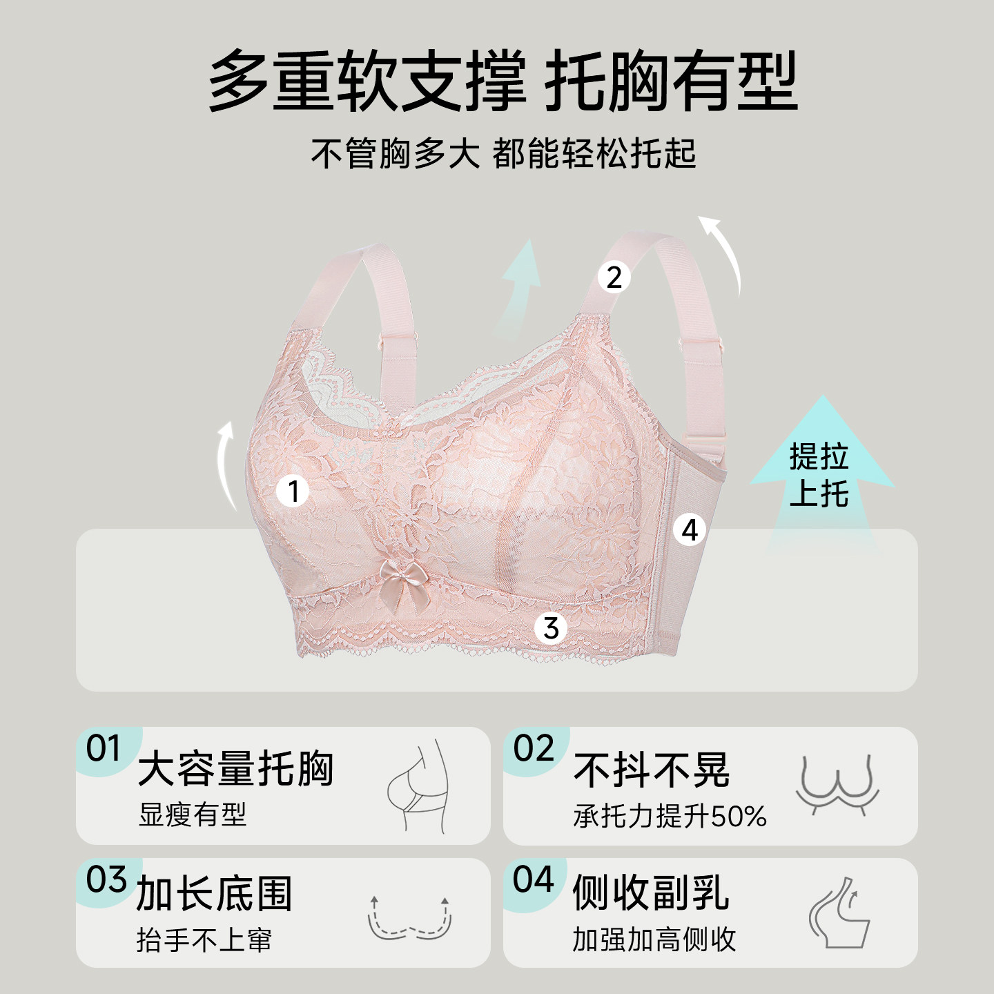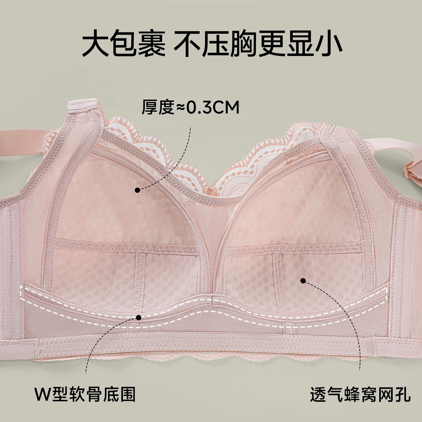 都市丽人大胸粉色蕾丝内衣女显小胸全罩杯超薄大码提拉防下垂文胸