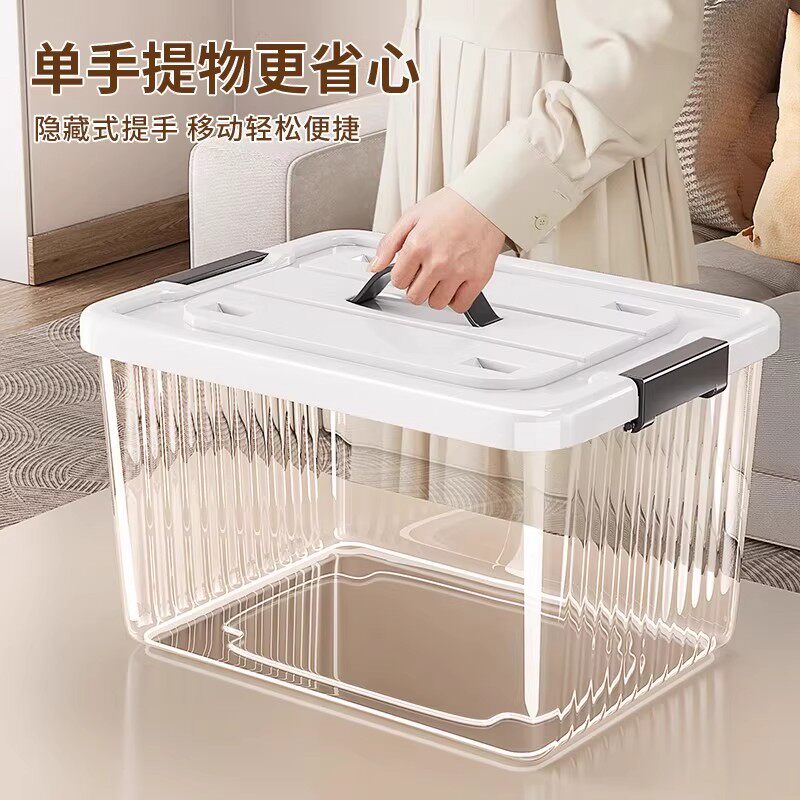 透明收纳箱超大容量带盖塑料整理箱家用衣服零食书本杂物储物箱子