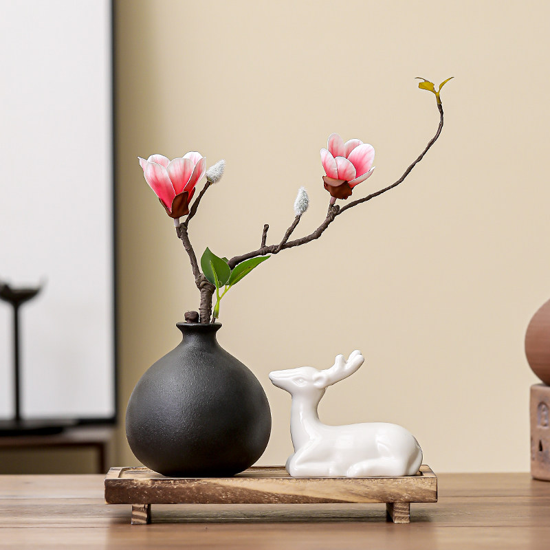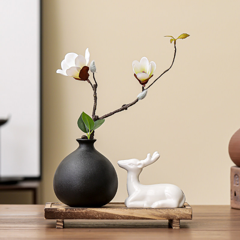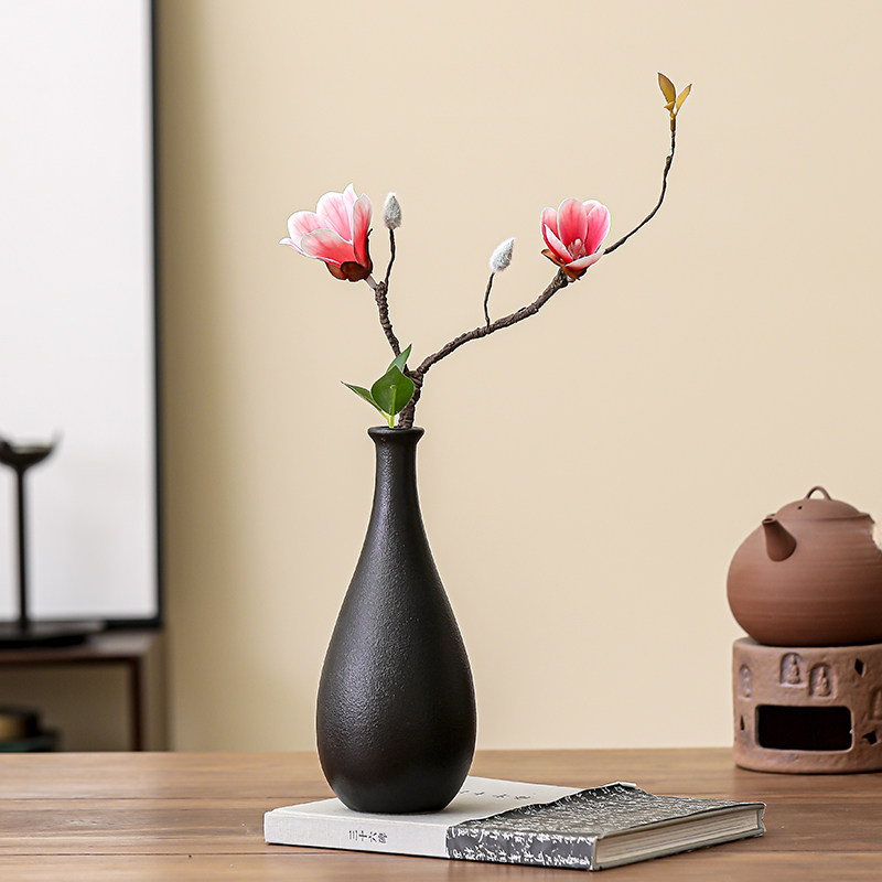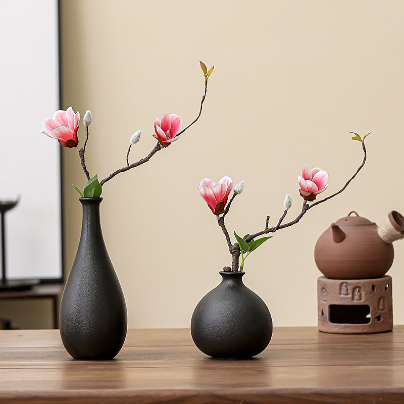 陶瓷桌面花瓶高级感禅意黑色中式复古装饰摆件插花玄关客厅电视柜