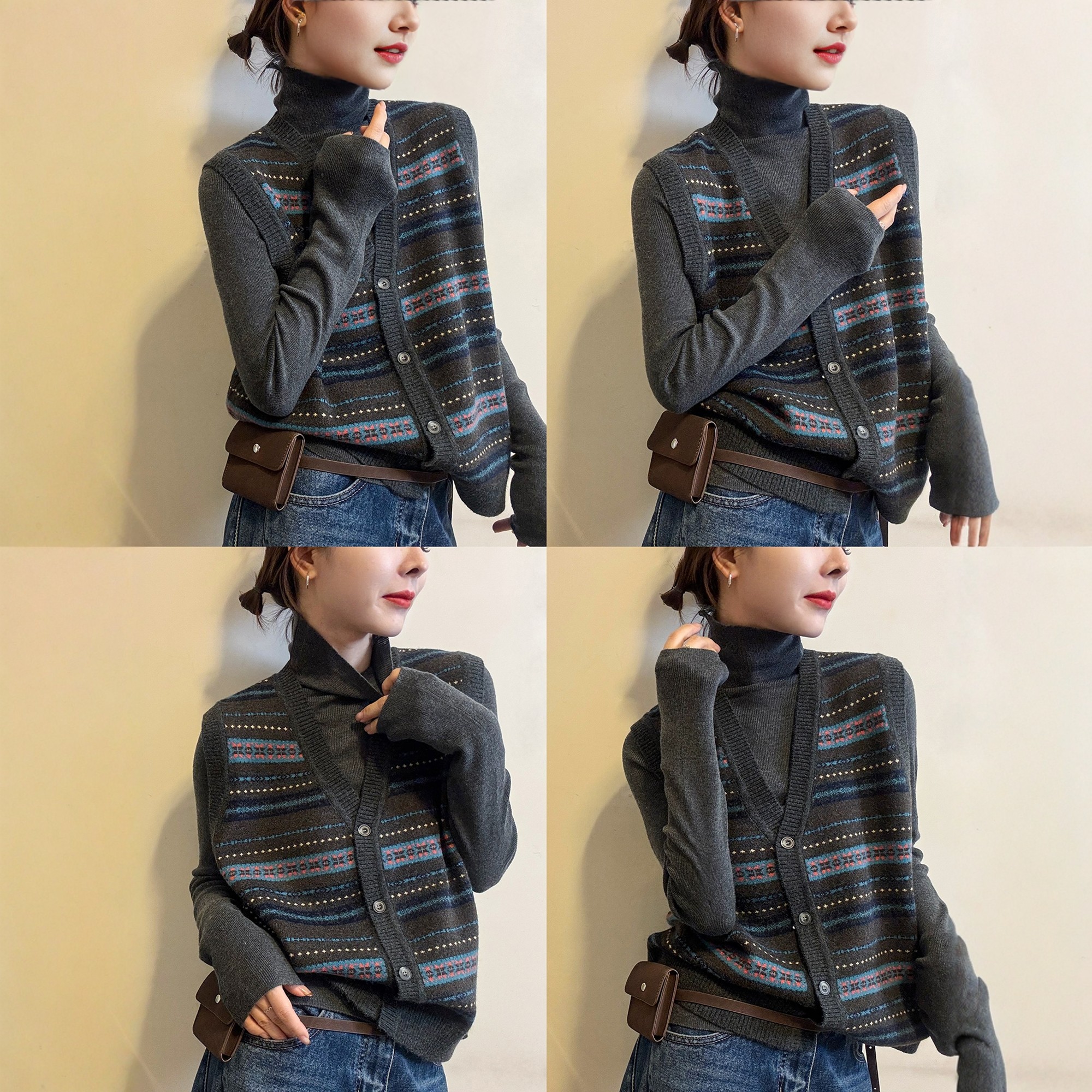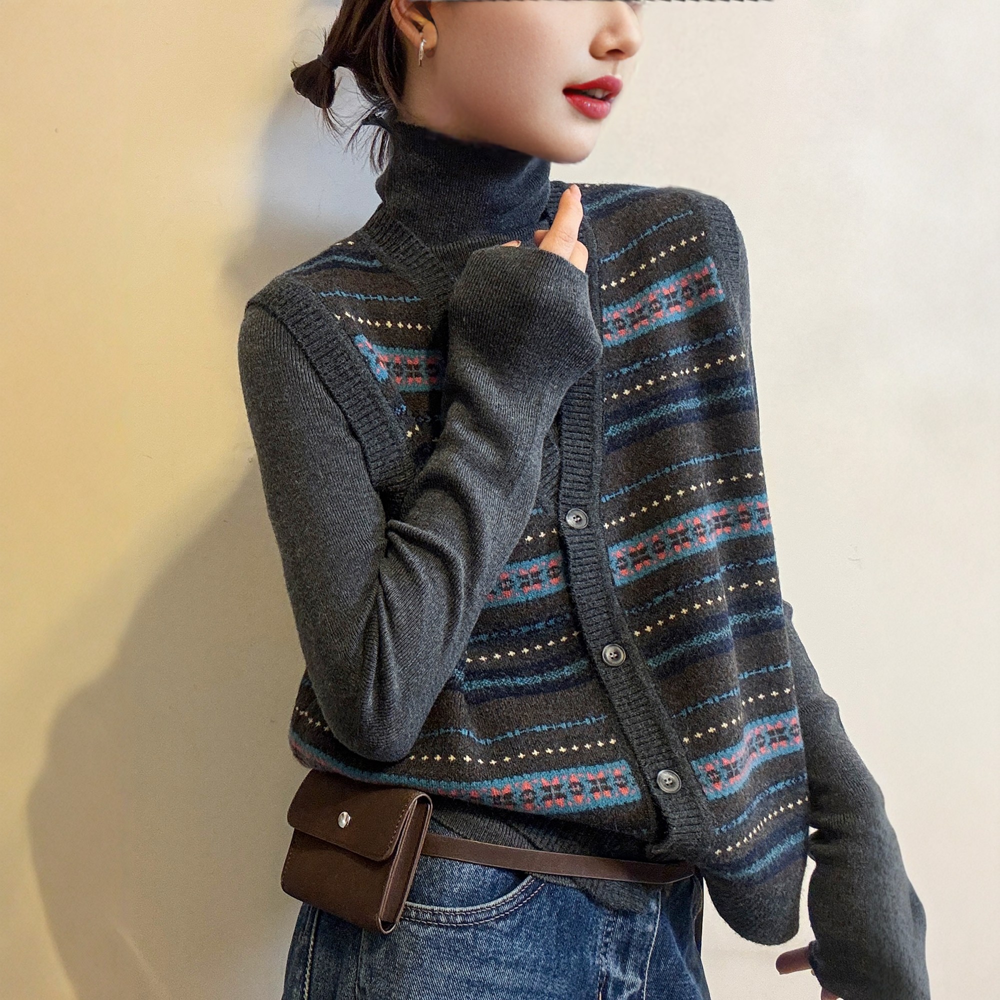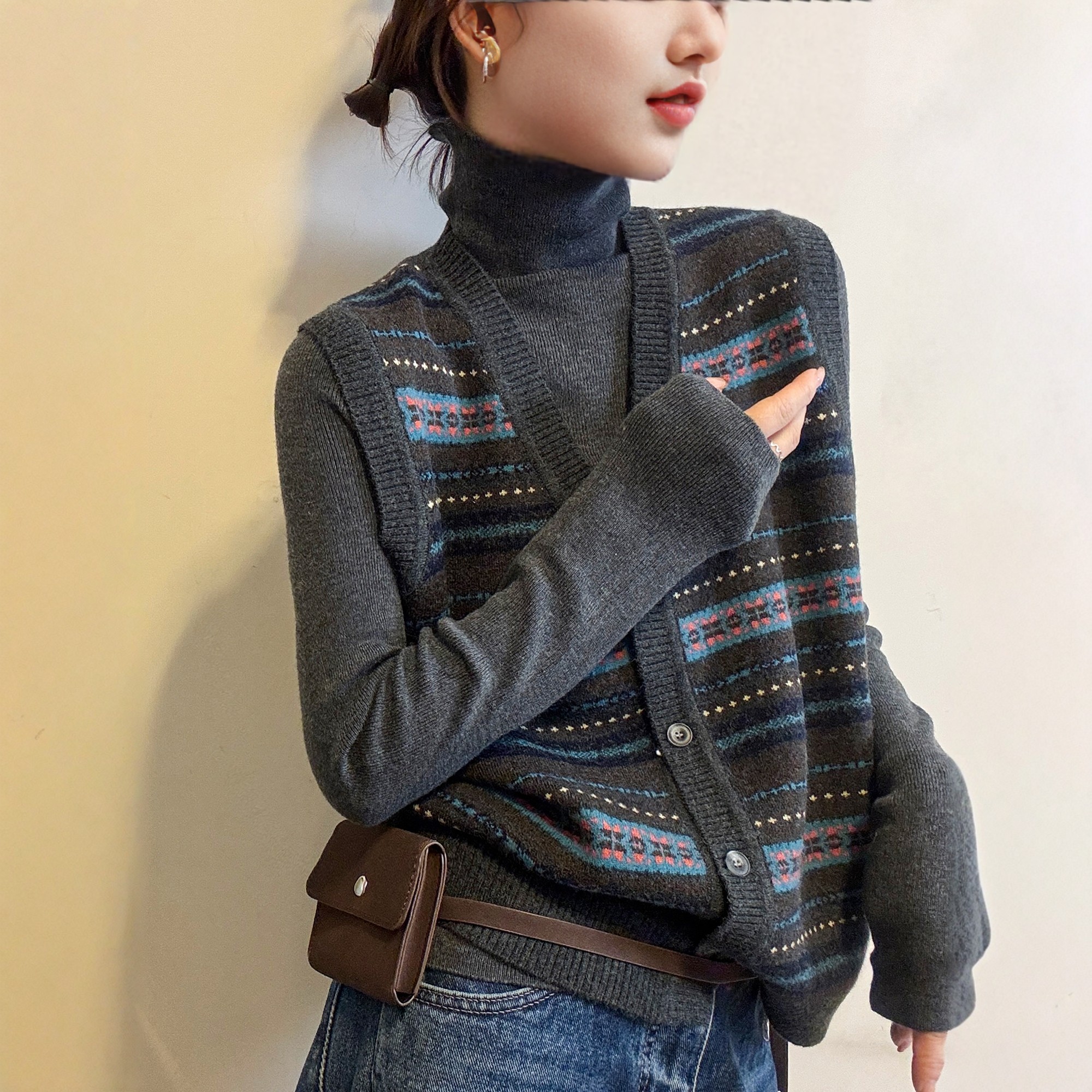 复古提花羊毛针织开衫马甲两件套女欧洲站2025冬装新款欧货女装潮