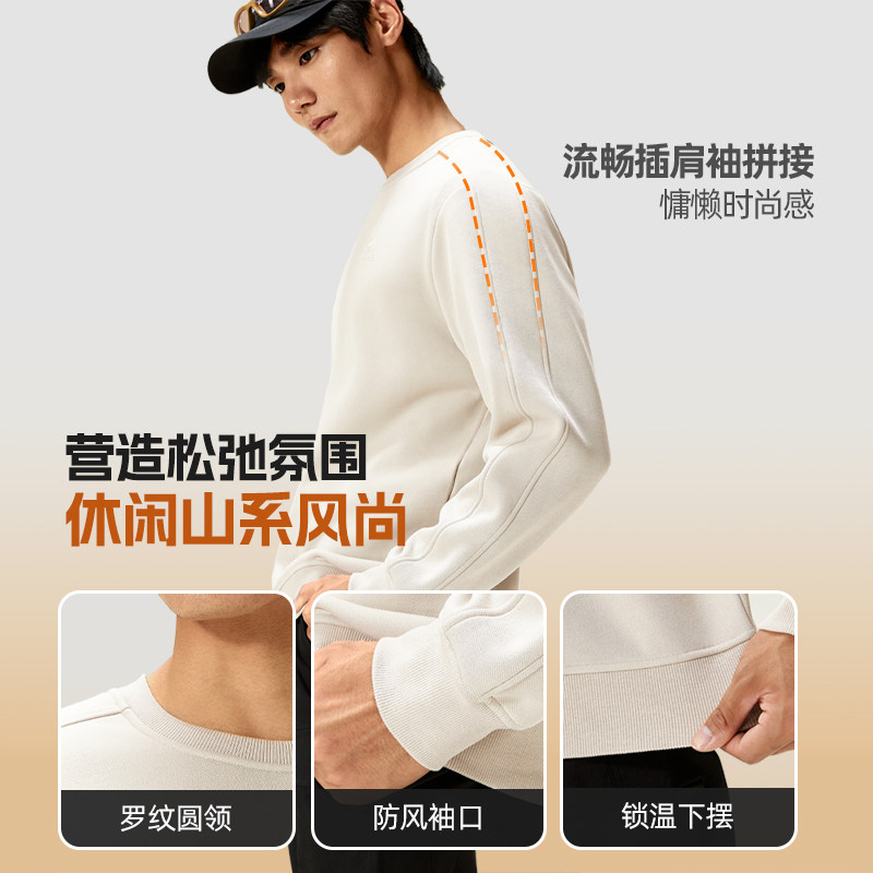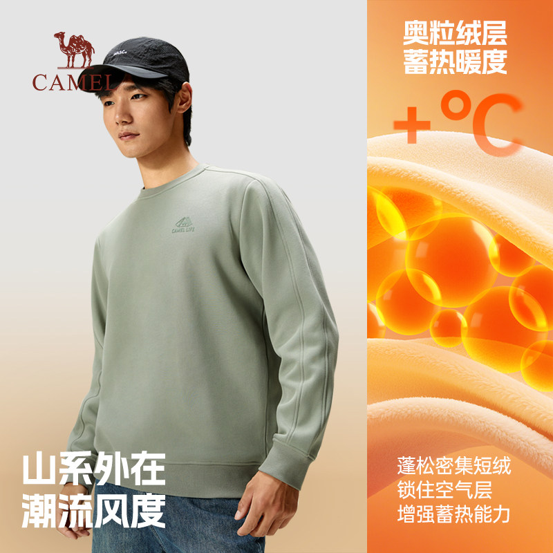 骆驼男装卫衣男款加厚奥粒绒新款户外圆领情侣短款内搭宽松上衣秋
