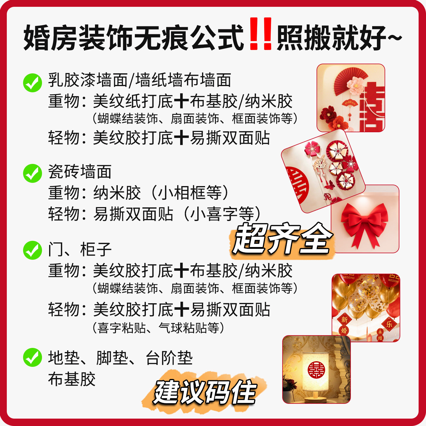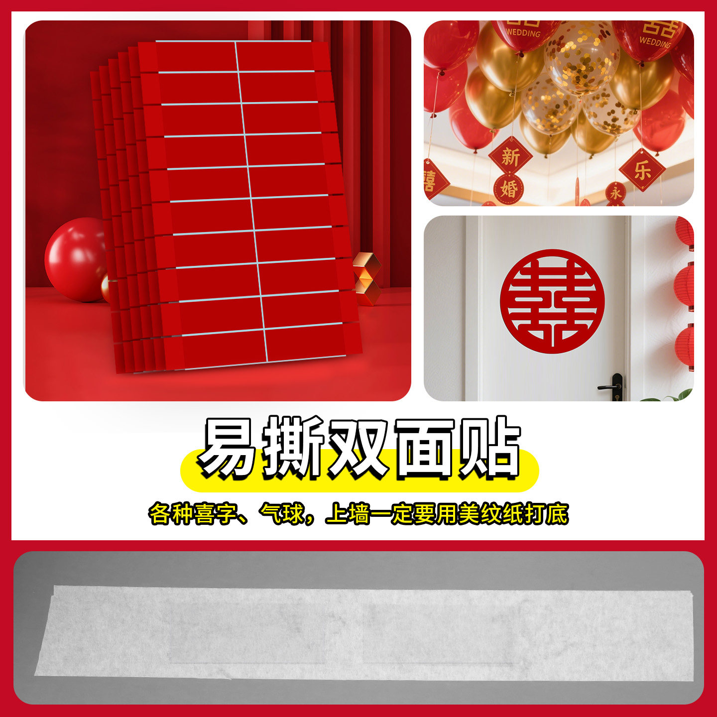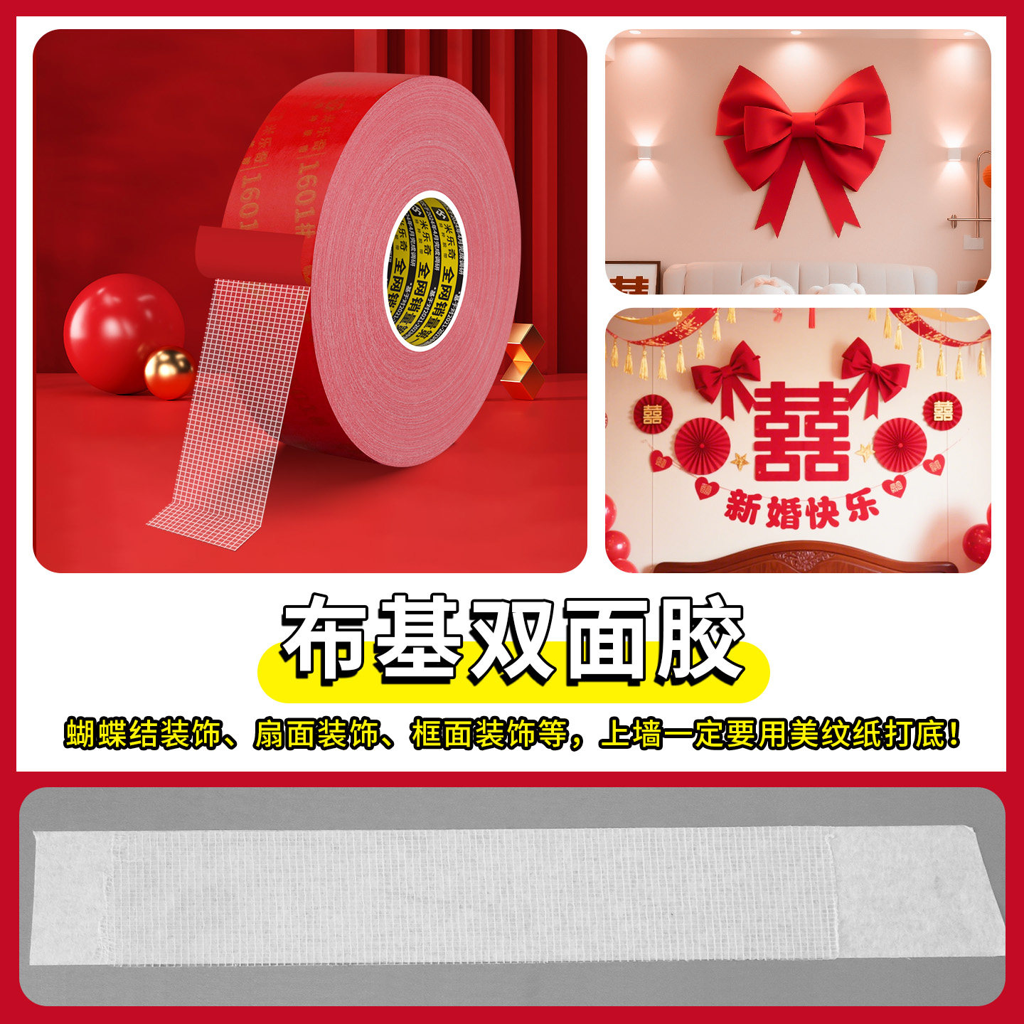 米乐奇床头布置无痕胶布艺装饰专用透明网纹布基双面胶气球点点胶对联春联自粘高粘度防滑贴2026马年节庆套装