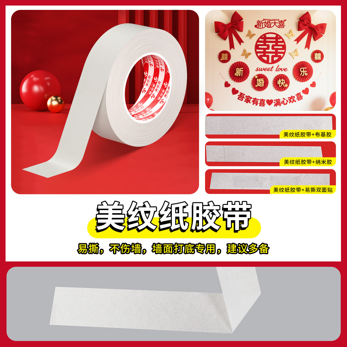 永冠美纹纸胶带可书写纸胶布喷漆遮蔽美纹胶手撕胶带美文纸美缝胶带画画贴边不残留分色胶带纸胶带美术生专用