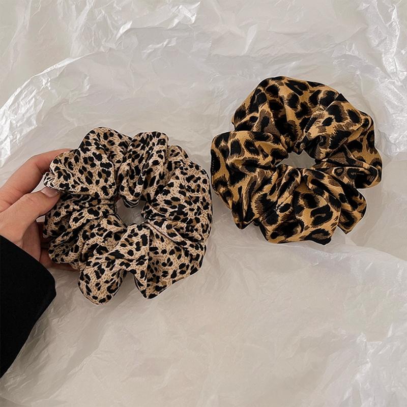 复古辣妹豹纹大肠发圈女扎丸子头马尾发绳高弹力皮筋不伤发头饰品